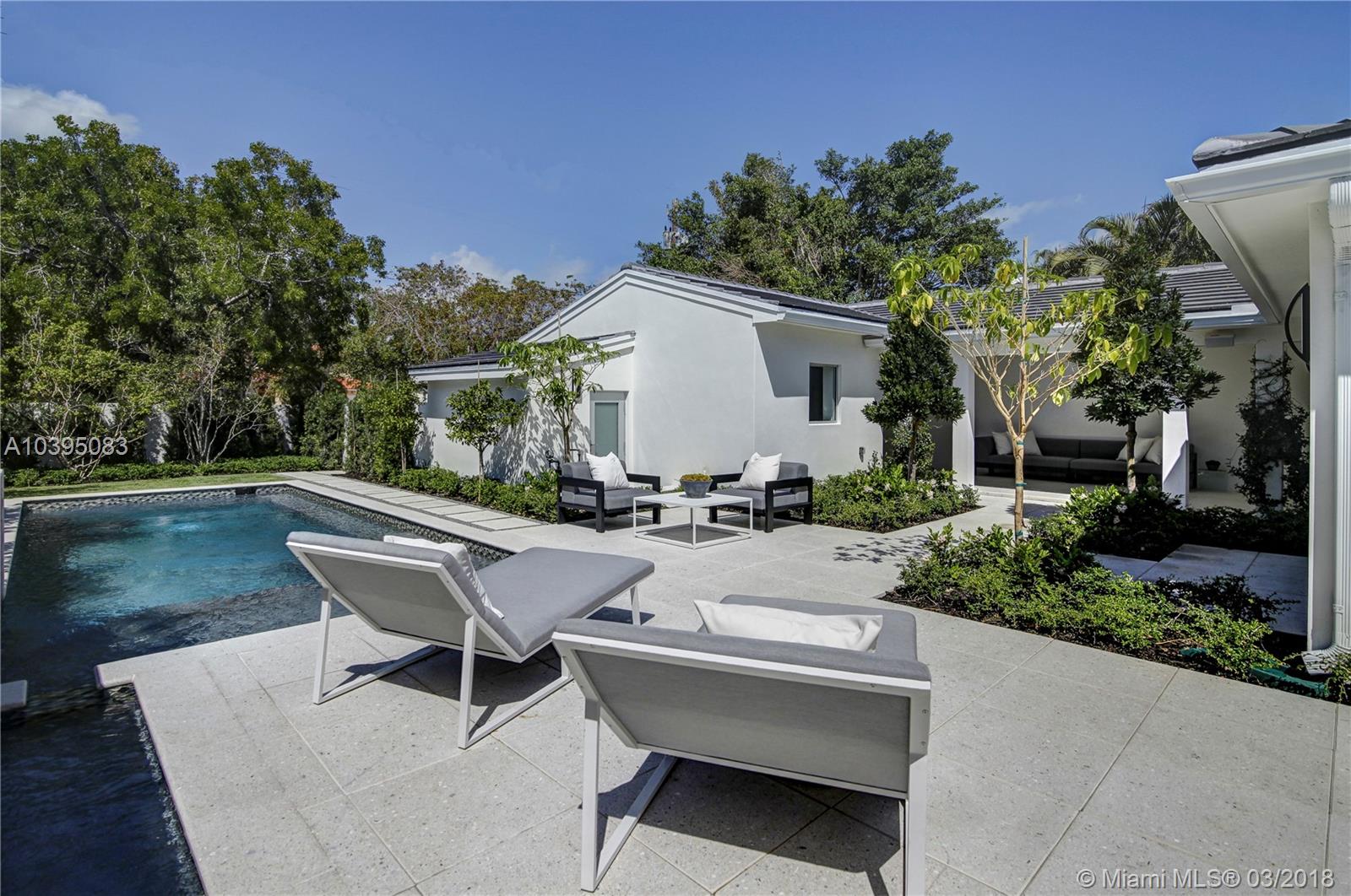 Historically preserved and renovated, this architectural treasure 2 story masterpiece sits on the 3rd fairway of the exclusive La Gorce Country Club’s Jack Nicklaus golf course. Architect Robert Gallagher renovated the 4328SF home to include beautiful double entry foyer, spacious floor plan with separate entrance for in-laws/maids quarters, large living room, terrazzo floored media room, and 2 garages. First floor master suite w/private patio on the golf course and separate entrance to the pool area. Intirium designed kitchen includes 6 person marble island, wine cooler, and Wolf & Sub Zero appliances. Other upgrades “smart pool” w/waterfall, hurricane impact windows and doors, Architronics smart home, Landscape design by Bell Landscape. Preserving while modernizing is this homes forte.
