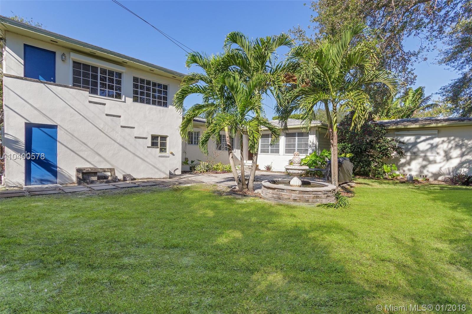 3 BEDROOMS AND 3 FULL BATHS IN MIAMI SHORES. MAIN HOUSE IS A 2/2 WITH AN ATTACHED 2 CAR GARAGE. SEPARATE ATTACHED 1/1 ABOVE THE GARAGE WITH SEPARATE ENTERANCE. NICE CORNER LOT WITH FENCED YARD AND ROOM FOR A POOL. ENTER THE FOYER AND THEN TO THE GRAND LIVING ROOM WITH HIGH CEILINGS AND BEAUTIFUL 1947 FIREPLACE. BIG DINING ROOM, COMBINATION KITCHEN AND FAMILY ROOM, OFFICE/DEN. TILE AND WOOD FLOORS. GOOD CLOSET SPACE. ADDITIONAL UNIT, VERY SPACIOUS, LOCATED ABOVE THE GARAGE. WALK TO DOWNTOWN MIAMI SHORES.