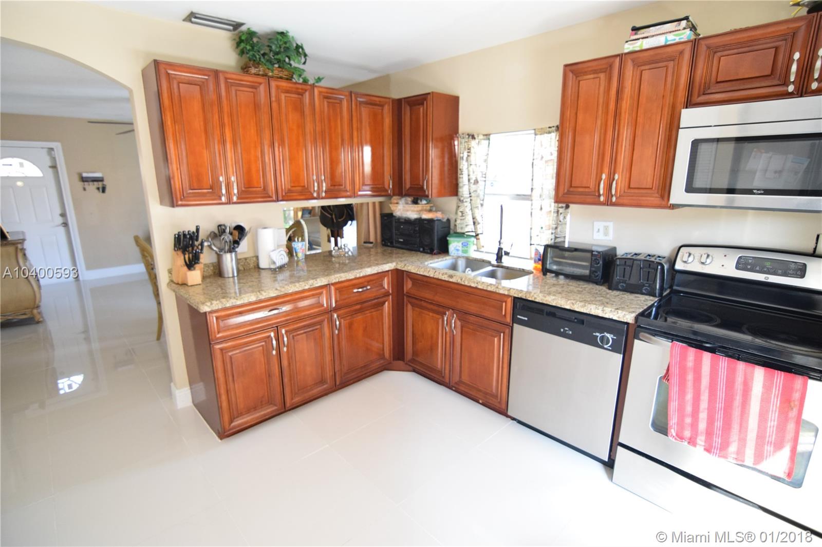 This cozy home has everything you need, beautiful tile floor, living dining area, updated kitchen, 3 bedrooms 2 bath. Master bedroom with walk in closet and a renovated master bathroom with shower. Big patio area with a pool and a storage room on the side of the house. Patio is completly fenced in. The house currently has a Tenant, paying $2,100, you have the option of transfer the lease or the tenant can leave in 3 months after effective date. No Homeowners association!!! Don't miss this opportunity, call this one your Home!