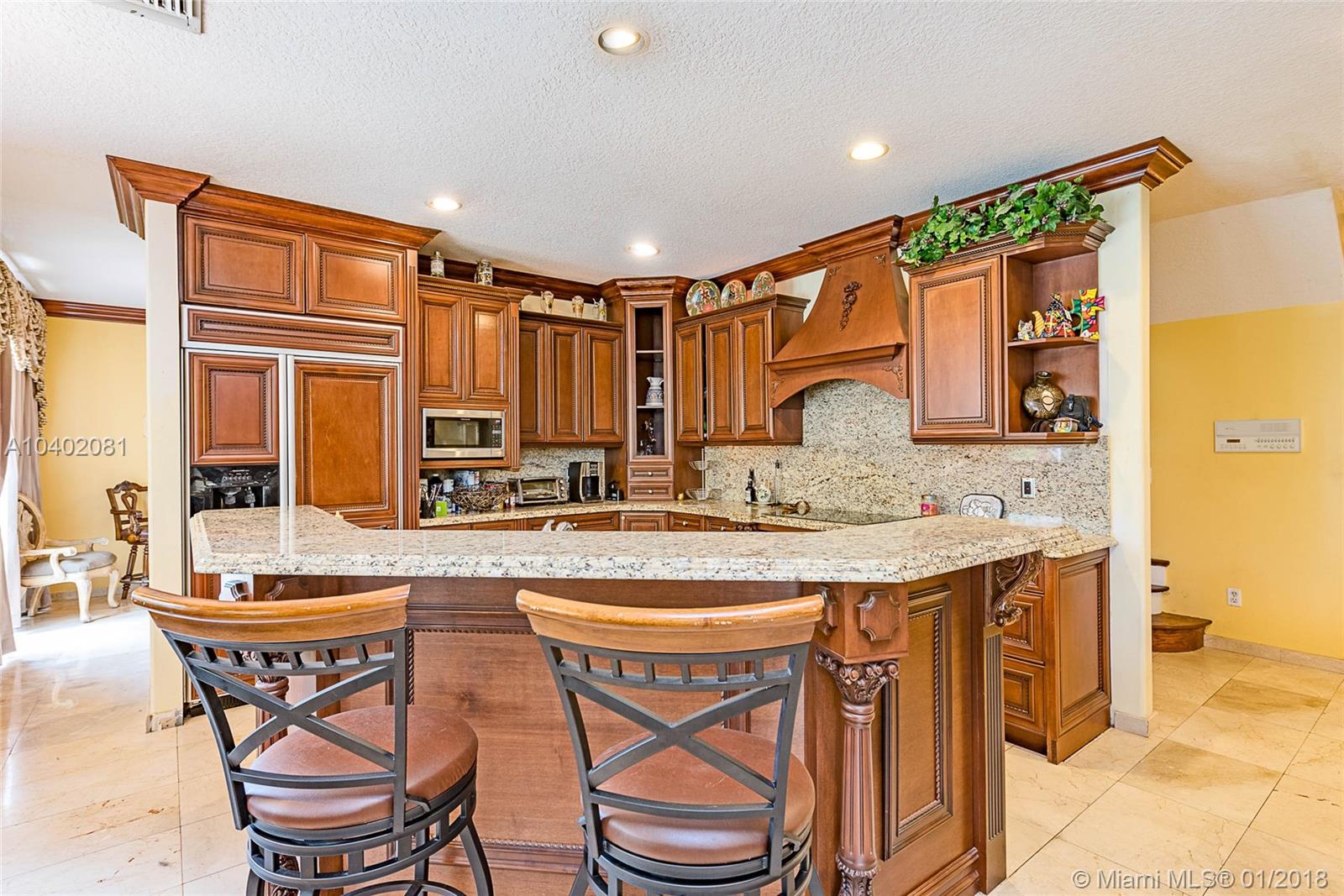 Two-story 4 bedroom/2.5 bathroom Silver Lakes Estate situated on an oversized 12,828 sq. ft. lot. Stunning first floor features include 16" x 32" crema marfil marble throughout, recess lighting, volume ceilings, wood crown moldings and a stunning dark sherry wood open kitchen with top of the line appliances, granite counter-tops and eat-in area overlooking the gorgeous pool area. As you enter the second floor with dark sherry wood flooring throughout, you will be amazed by a one of a kind double door master bedroom with a separate sitting area, dual walk-in closets and a must see master bathroom. Once you walk into the outdoor area, you will certainly feel like you're in a resort style tropical oasis surrounded by trees and a residential pool like you've never seen before. A MUST SEE!!