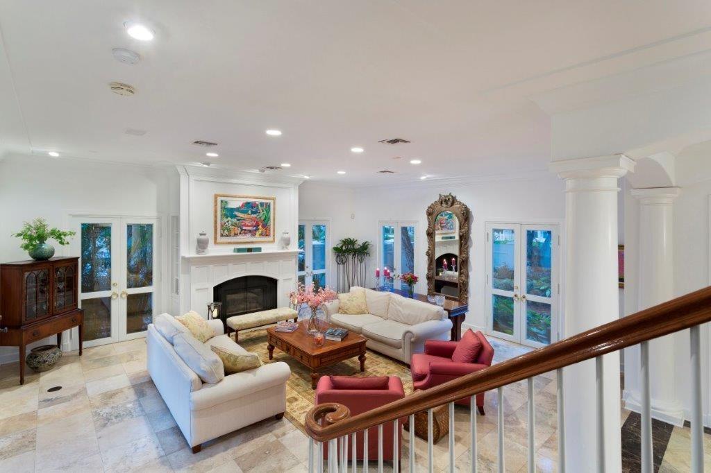 Exceptional Palm Beach Inspired Walled Estate in Gated Sunrise Intracoastal Community. Foyer entry, formal dining room, formal living room with fireplace, family room adjacent to eat in kitchen with breakfast area opens to covered sitting area overlooking pool, perfect for entertaining. Grand staircase opens to loft style room, large master suite with sitting area, 3 additional bedroom one with bath en suite, 2 bay garage & guest house with cabana bath. Pool & large fenced back yard. Bayview Elementary.