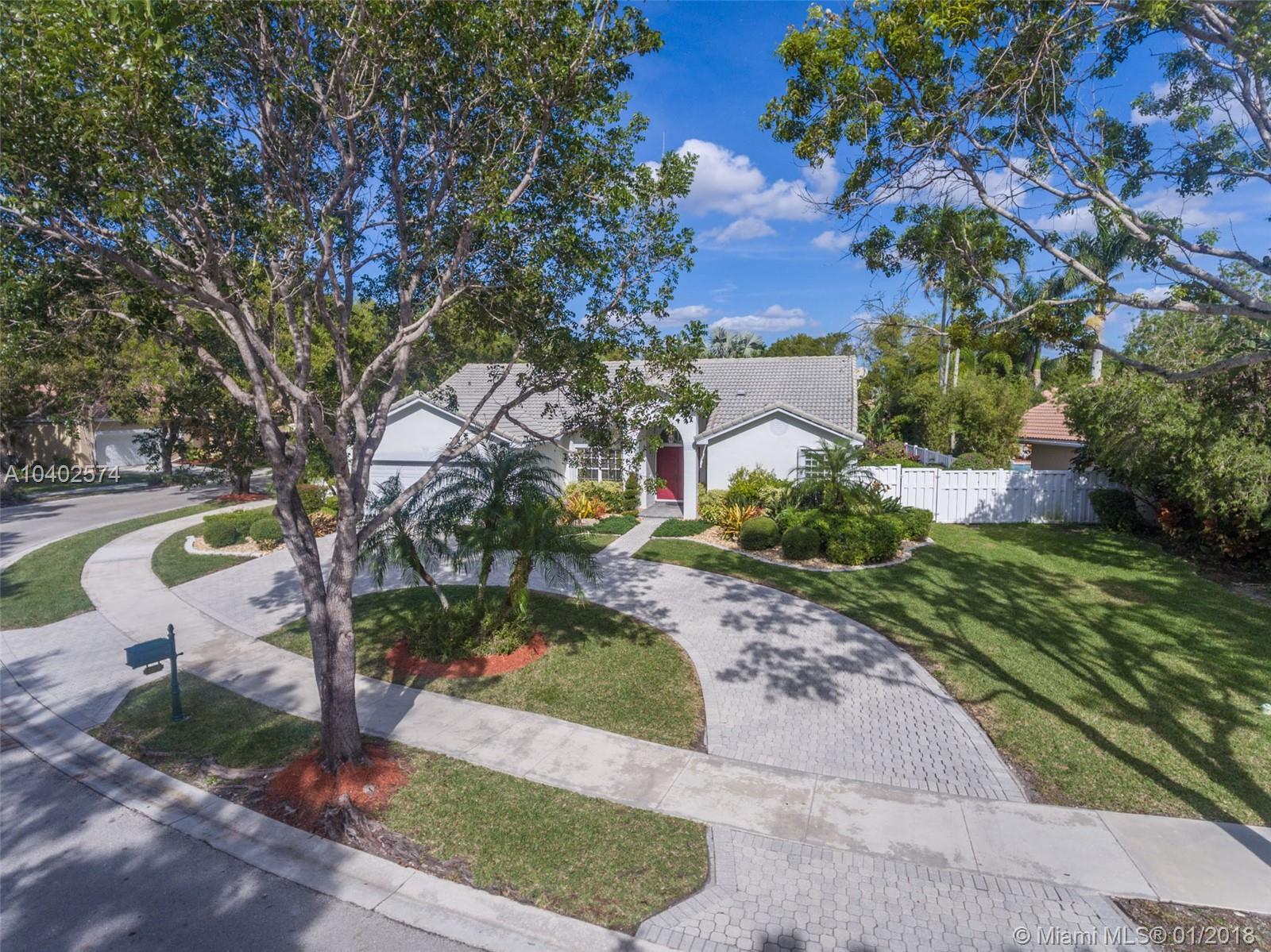 Welcome to Waterford Landing - a boutique community located in walking distance to Weston Town Center. Custom Home with pride of ownership tucked on a private corner lot with an oversized lushly landscaped yard fully PVC fenced for privacy. Grand circular pavered driveway. Recent renovations include a new chefs kitchen with white wood shaker cabinets, granite countertops and SS appliances. All bathrooms have remodeled in today's style and taste with quartz countertops. White diagonal marble floors throughout living areas. All new wood-look rectified porcelain tile floors throughout bedrooms. Renovated travertine pool deck with diamond bright and spa. New A/C in 2017. Custom drapery. Crown molding throughout master and living areas. LED ceiling lights throughout living areas.Newer roof 2007
