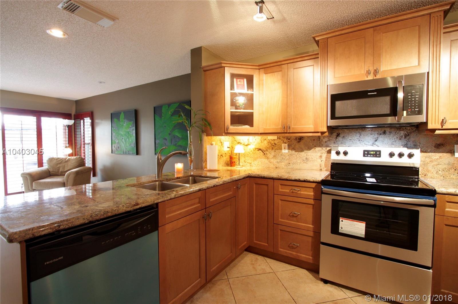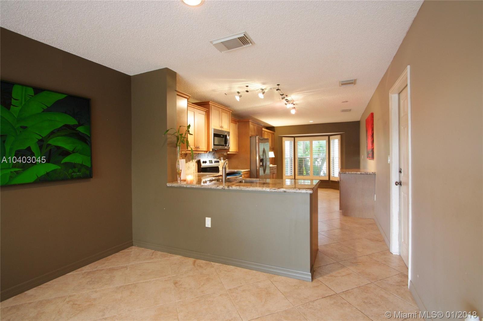 This popular three-bedroom, two-and-a-half-bath, single-family home (the DaVinci model) is on a prime, waterfront lot and has been beautifully updated. The living room features cathedral ceilings, extra windows, Brazilian Cherry hard wood floors and matching plantation shutters. The large eat-in kitchen has granite counter-tops, wood cabinets, a breakfast bar and brand-new stainless steel appliances. The bathrooms also have granite counters. There's a full set of accordian hurricane shutters. The private back yard has a large paver patio and has views of the lake and the park. (Enjoy having no back neighbors.) West Lake Village is a gated community with tennis, heated pool, hot tub, exercise room, clubhouse and a kid’s play area. It is very close to Hollywood Beach and Downtown Hollywood.
