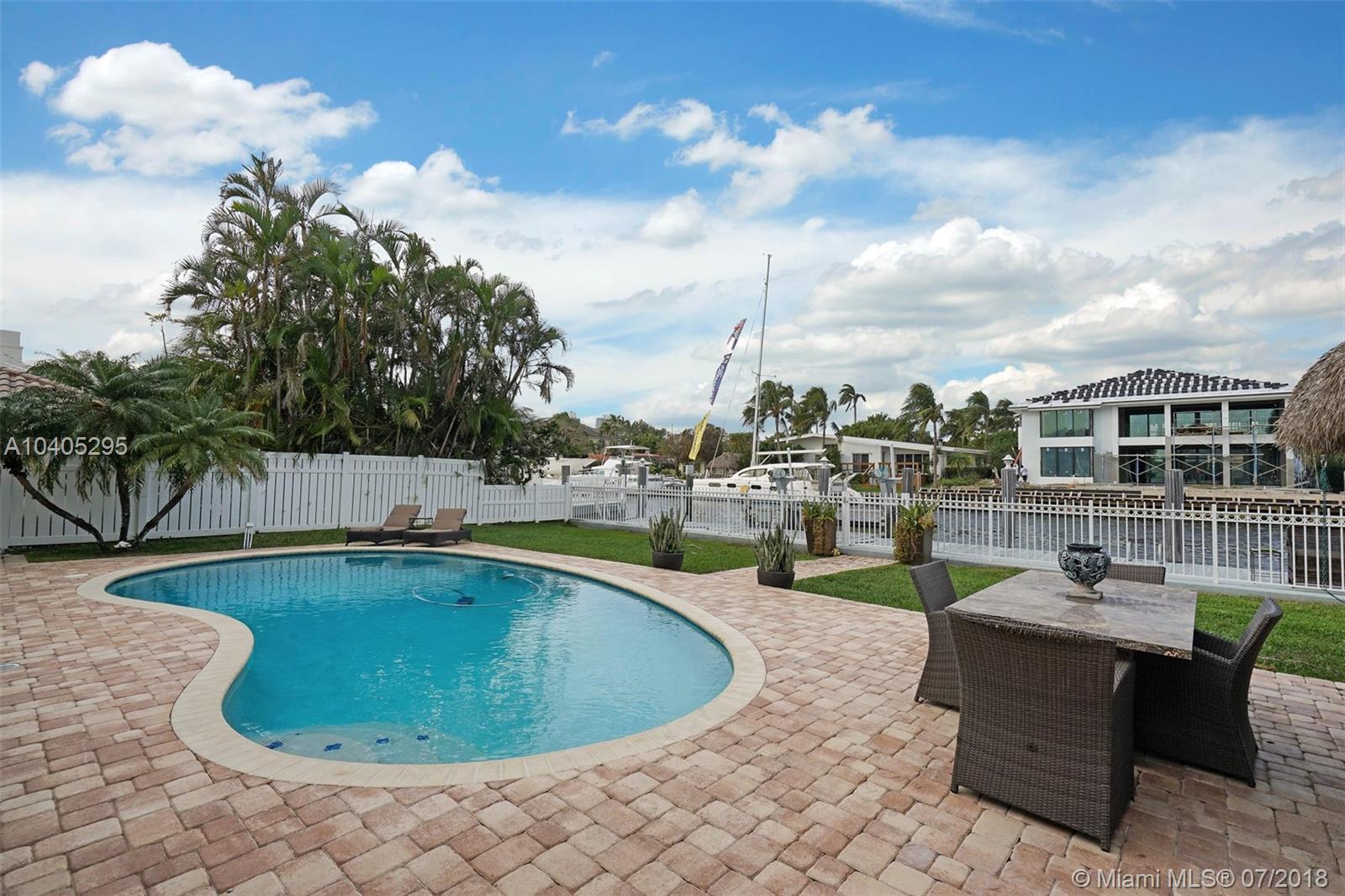 NEW FLOORING JUST INSTALLED! PRESTIGIOUS RIO VISTA ISLES WATERFRONT!75 FT of Deep-Water Ocean access with no fixed bridges, 3 Bed/Split Plan, all bedrooms have walk-in closets. 3 Baths renovated with designer touch. Open waterview floor plan with natural lighting, and updated wood floors throughout. Gorgeous kitchen w/ambient lighting & 2 bars, huge heated pool along side of a tiki hut overlooking the dock & water. Pavered Patio & circular driveway with a 2 car garage. 12,500 LB boat lift & underwater lighting. Adjacent to Las Olas Boulevard, lined with Boutiques, Galleries, Restaurants, and Cafes.