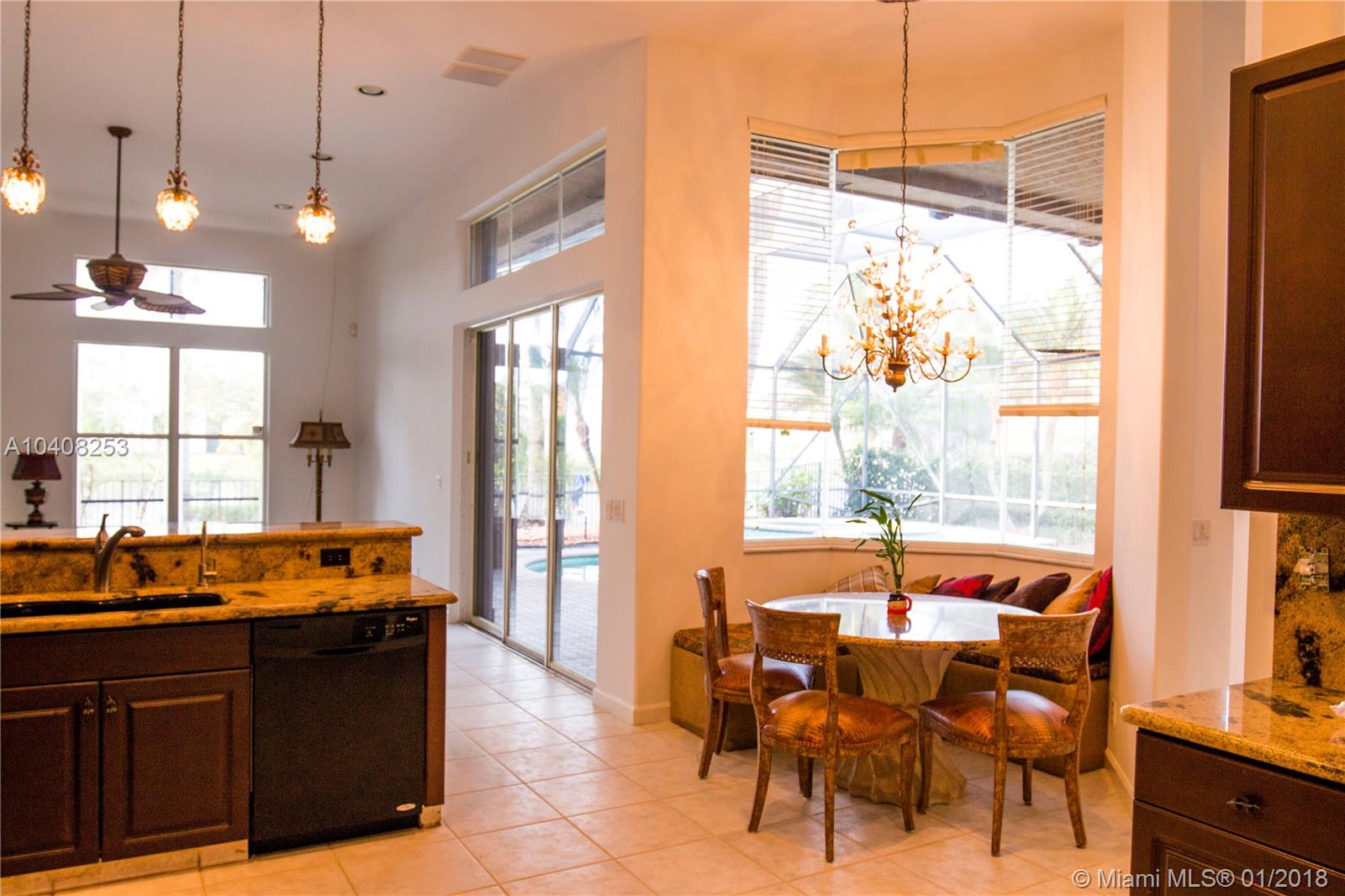 Grand Isles is one of the most prestigious gated community in Coral Springs. As you enter the house thru its double doors you can see the beautiful pool and lake, giving you a peaceful feeling. This magnificent house has 5 bedrooms, 3 full bath and one 1/2 bath, 2 suites, all rooms with walk in closet and hard wood floors. Split floor plan; nothing was spared here to make this house beautiful and ready for a new family. Inside was completely painted, bathrooms were recently renovated, they are modern and clean, granite counter top in kitchen with double oven, top of the line black appliances, eating in kitchen area is perfect situated on a corner with huge windows that allow you to see the pool and lake while enjoying a meal with the family. Master bedroom is very large, her and his WIC