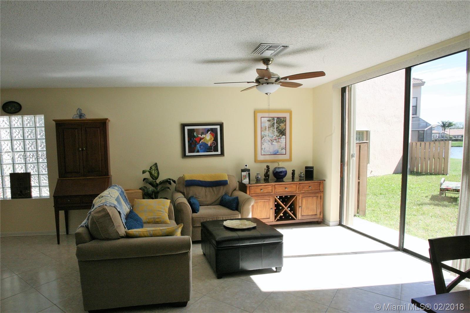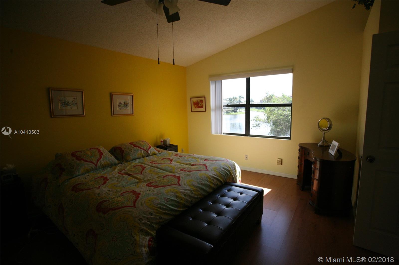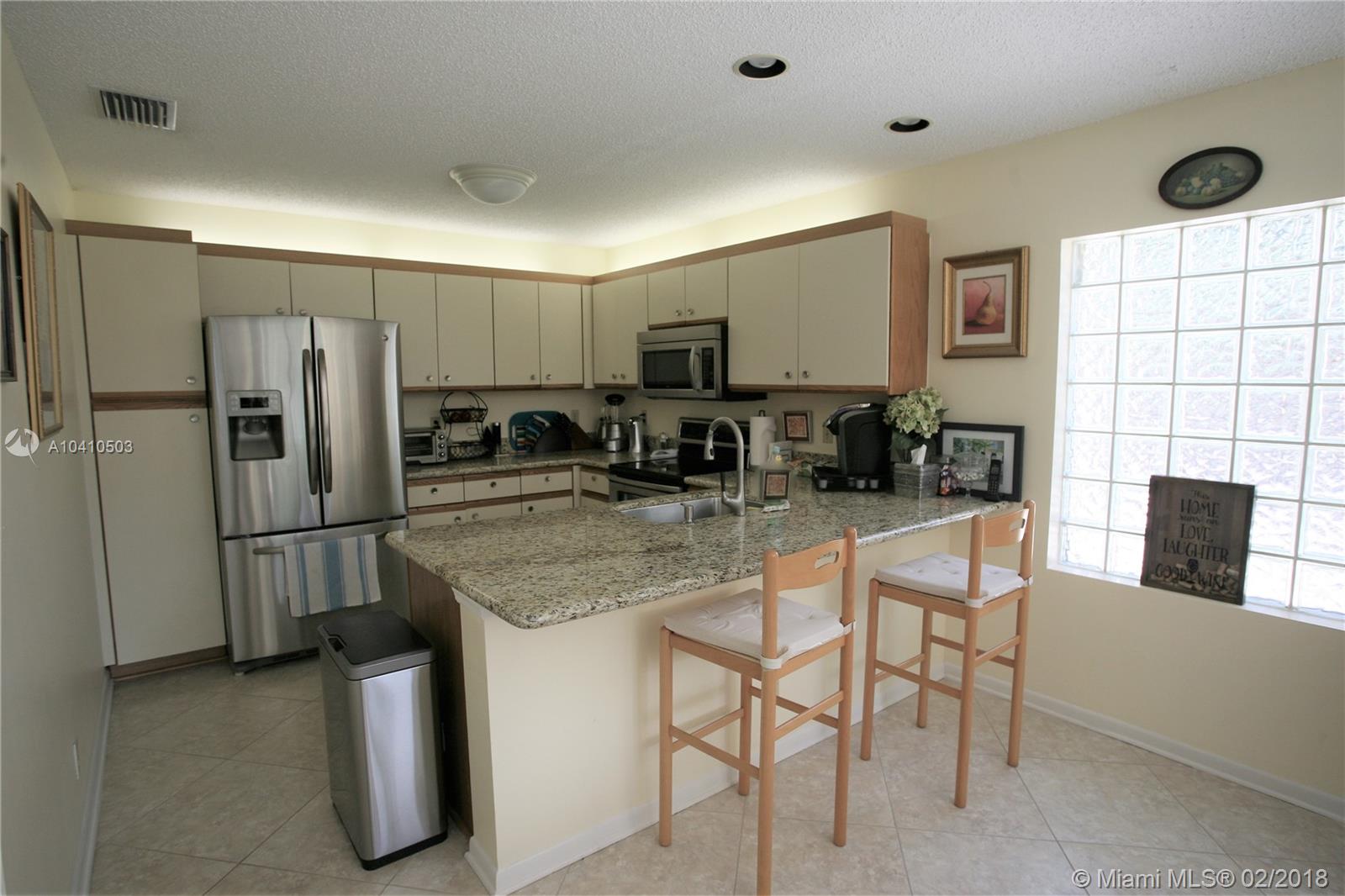 Enjoy the magnificent wide lake & fountain views & large private yard from this spacious extremely clean well maintained home complete with open floor plan, covered patio, open kitchen & accordion hurricane shutters. This carpet free home has large tile & wood like flooring throughout, tons of natural lighting, skylights, vaulted ceilings, open kitchen with granite counters & newer stainless appliances, one year new water heater, fabulous storage, & upgraded Maytag washer & dryer complete with upper drying cabinet . Spacious master suite with double door entrance & beautiful lake views. Located on great private lot in desirable Fountain Spring community with community pool & park along with great access to shopping, highways & schools.