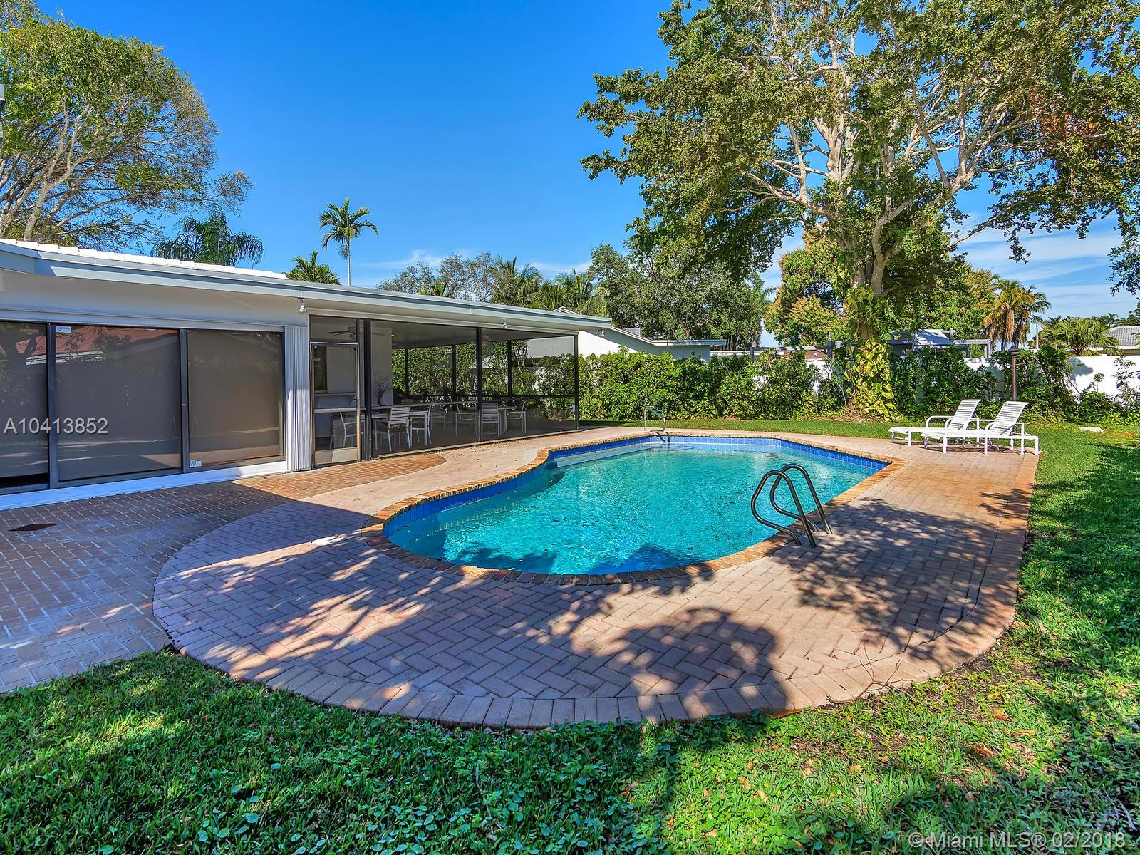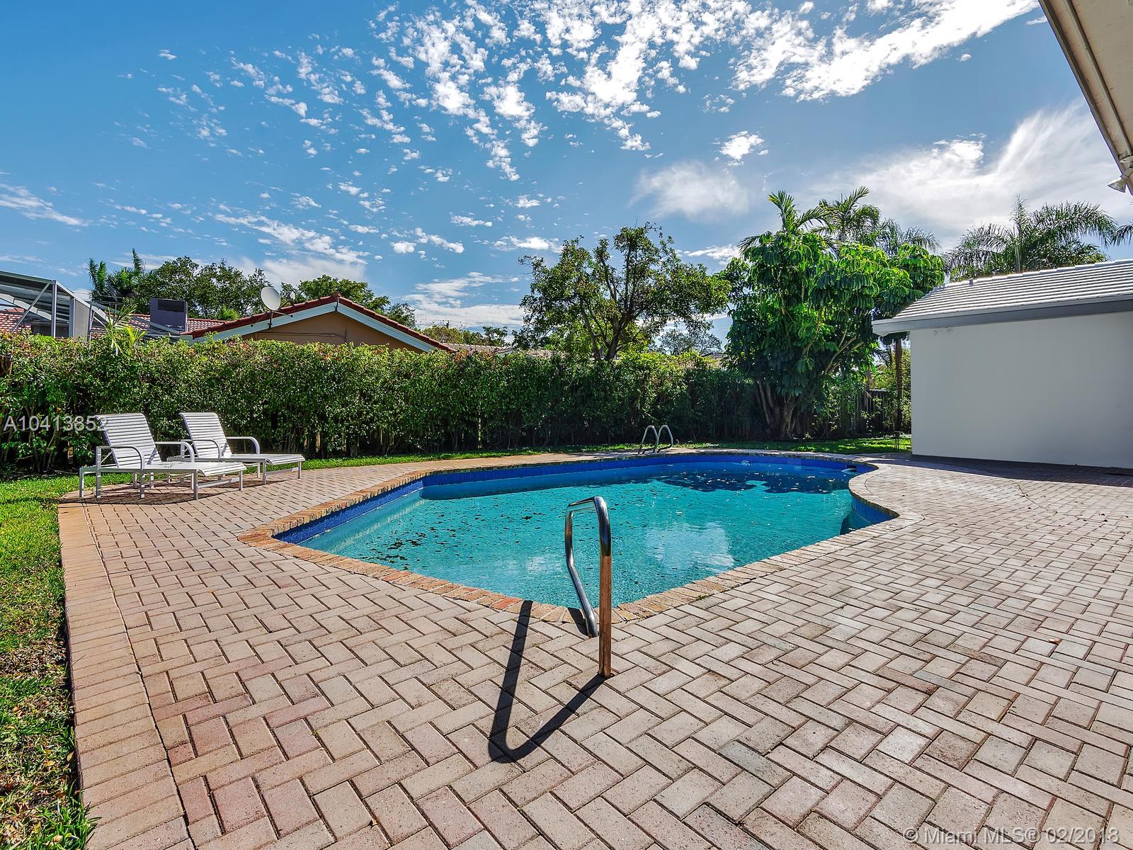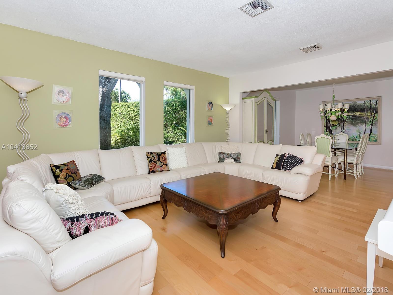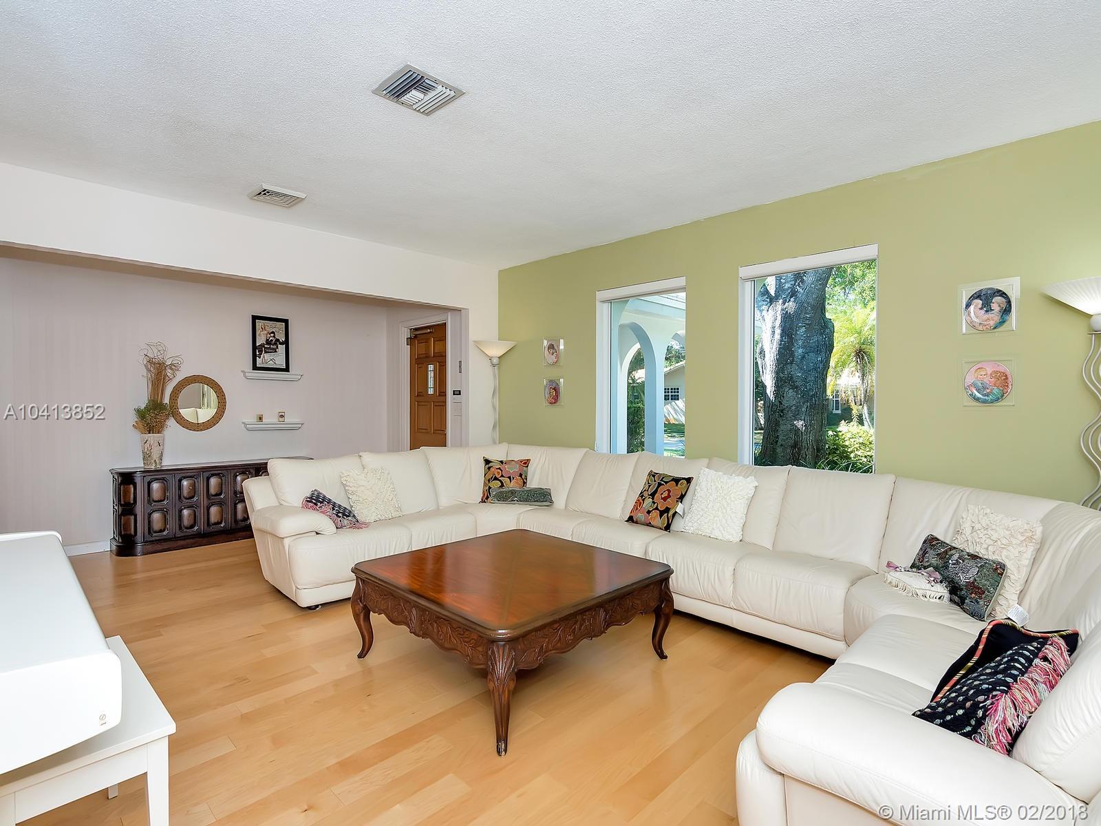 Elegant architectural arches greet you as you walk up the paved circular driveway and on through the pathway leading up to the front door. Enter into the foyer which opens into the formal living & dining rooms allowing options to customizing the layout of your new home. Enjoy upgrades such as all engineered wood floors, impact glass windows in front, new bathrooms and new roof with warranty. Other features include large walk in closet in master + second bonus closet, large bedrooms, HUGE family room, wrap around screened patio, over-sized pie shaped lot with very large pool. Convenient location near highways, airport, beaches, shopping, restaurants, nightlife & walking distance to houses of worship,