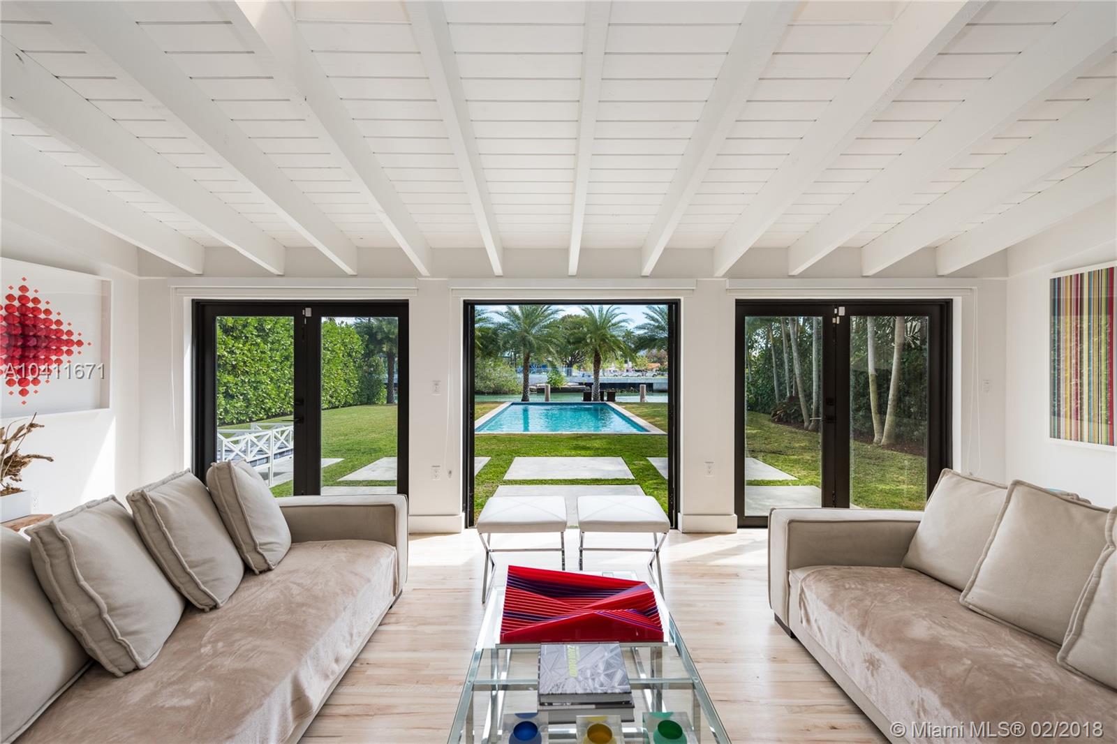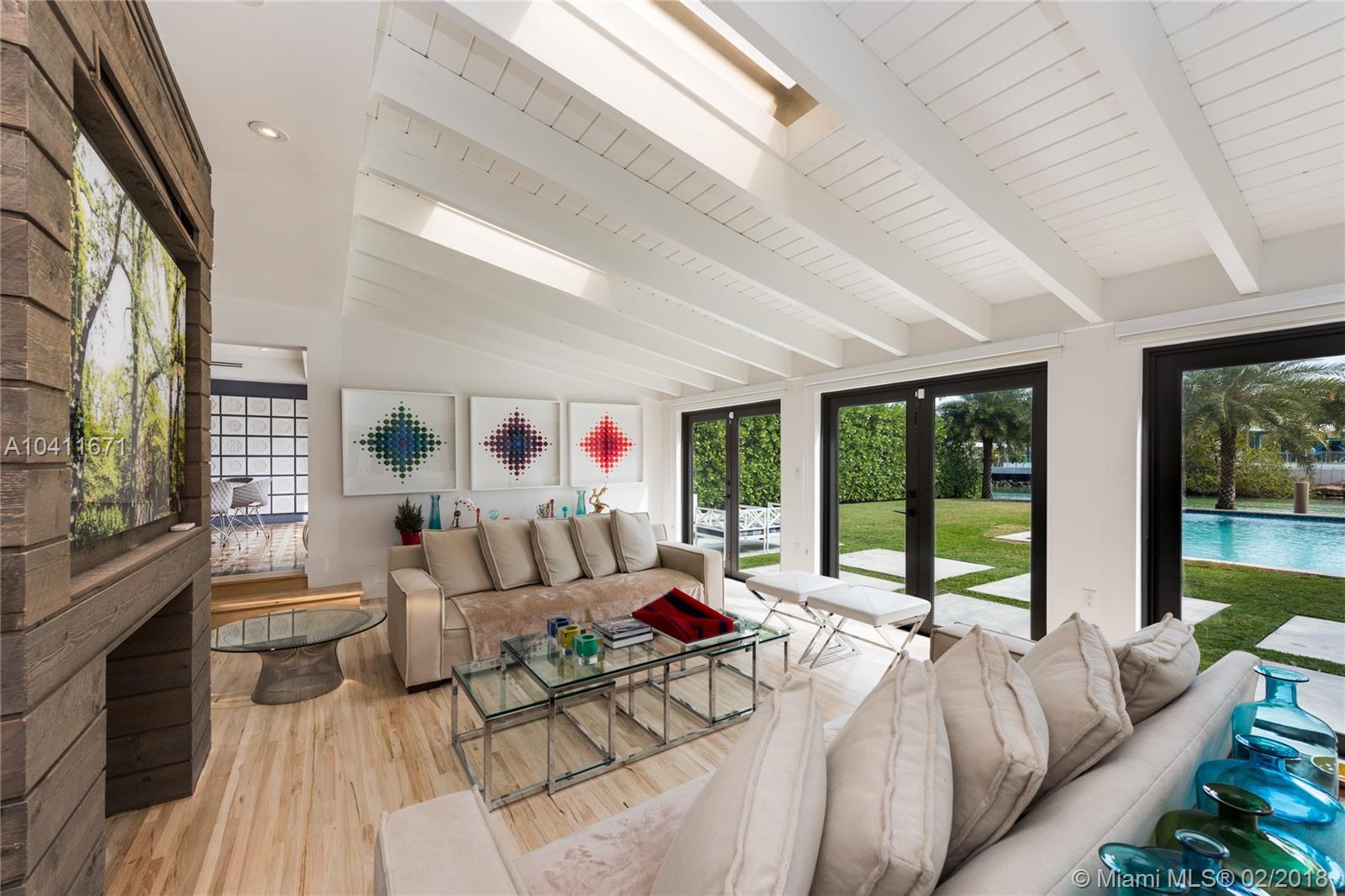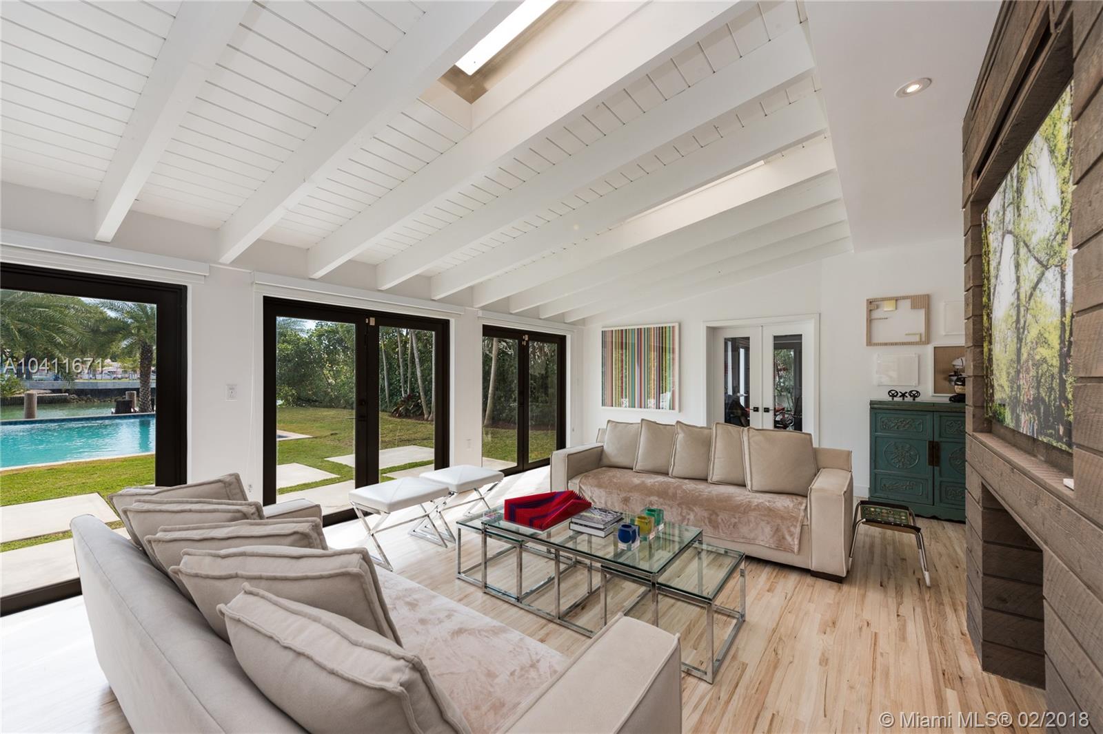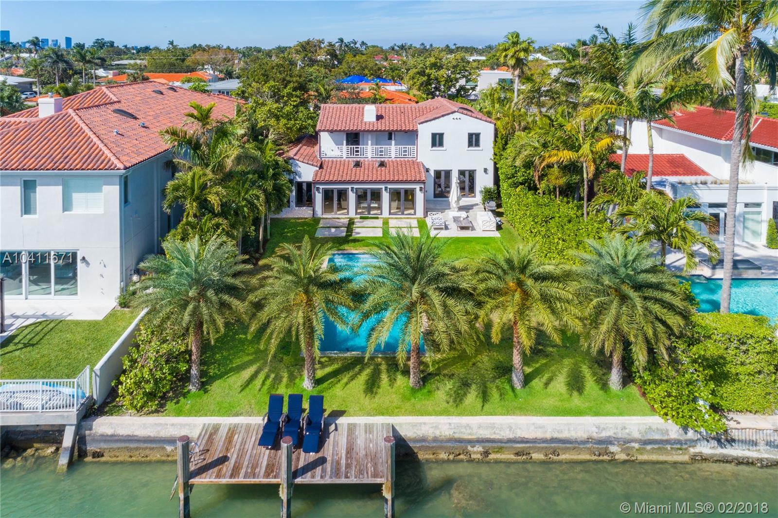 Elegant 2-story Mediterranean 4 bed/4 bath waterfront home – completely renovated. Pecky Cypress vaulted ceilings, Cuban tile and hardwood floors conserve its 1929 old-world charm. Interior features 3,401 sf, open floor plan, and introduces modern luxury with floating stairwell, double sided fireplace and custom kitchen with chef’s island. Master Suite includes oversized bath, walk-in closet and private terrace. Soothing view of wide channel with deep 66 ft waterfrontage, protected boat dock, and pool. 2 car garage and additional terrace overlooking the courtyard. Property completely private from the public and neighboring properties via walled fence.