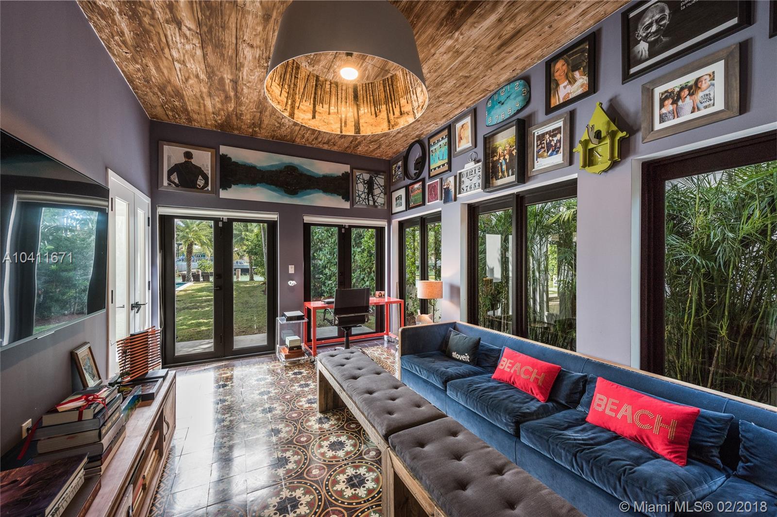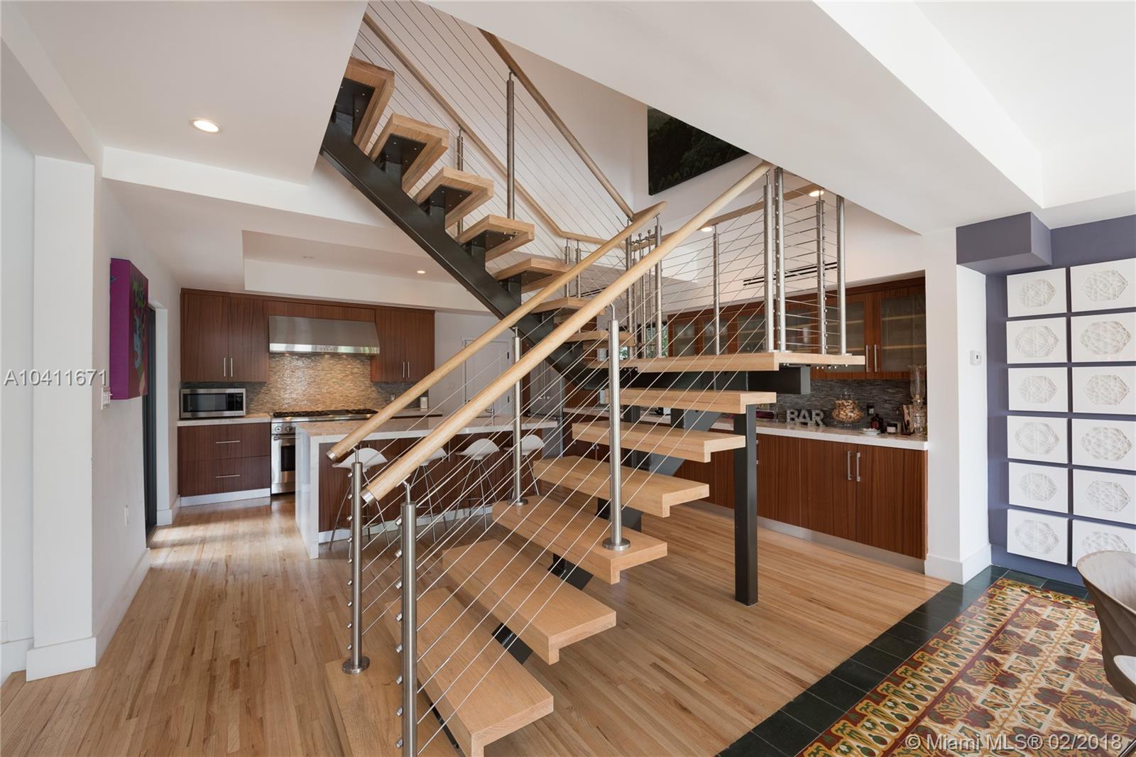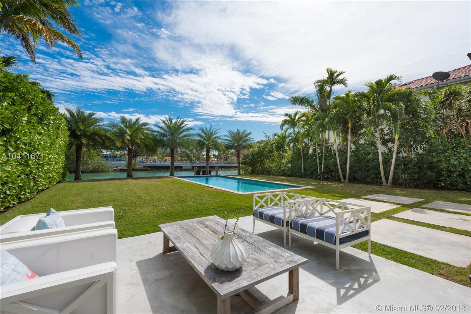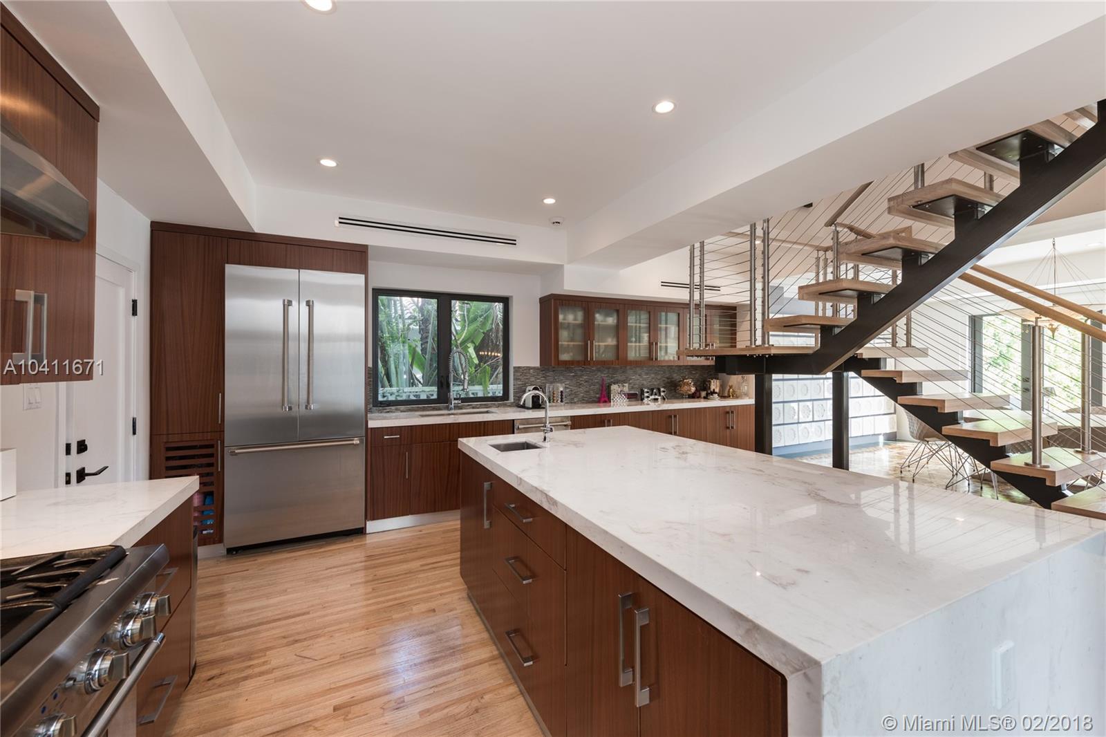 Elegant 2-story Mediterranean 4 bed/4 bath waterfront home – completely renovated. Pecky Cypress vaulted ceilings, Cuban tile and hardwood floors conserve its 1929 old-world charm. Interior features 3,401 sf, open floor plan, and introduces modern luxury with floating stairwell, double sided fireplace and custom kitchen with chef’s island. Master Suite includes oversized bath, walk-in closet and private terrace. Soothing view of wide channel with deep 66 ft waterfrontage, protected boat dock, and pool. 2 car garage and additional terrace overlooking the courtyard. Property completely private from the public and neighboring properties via walled fence.
