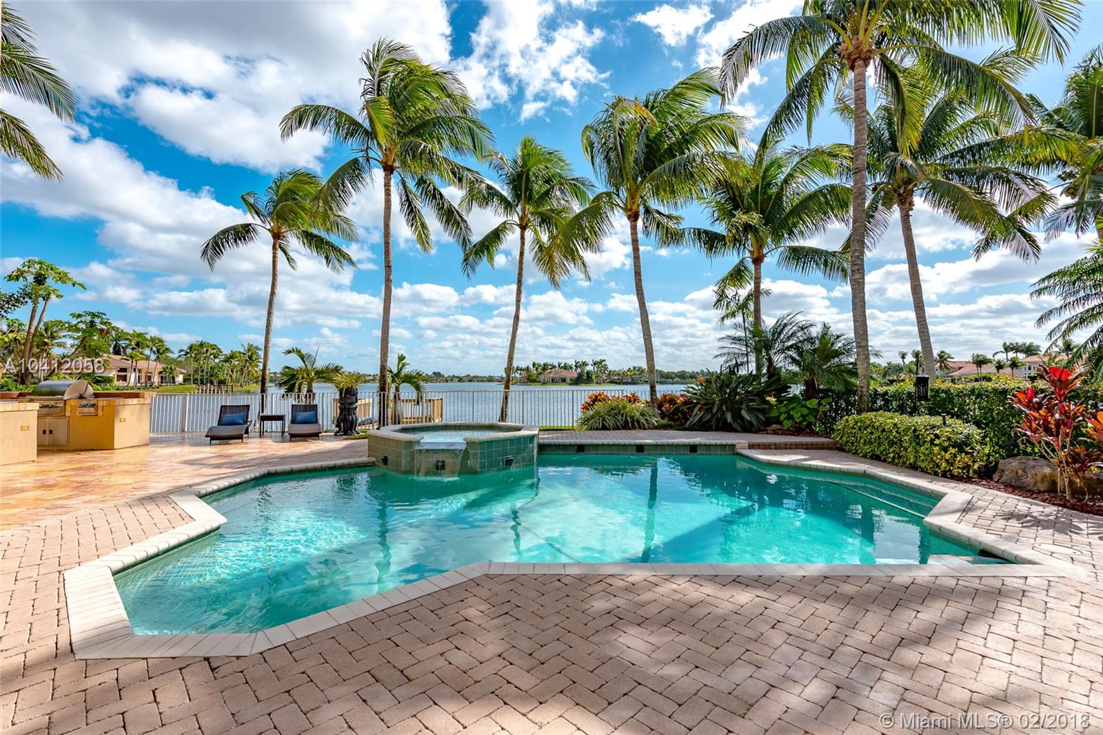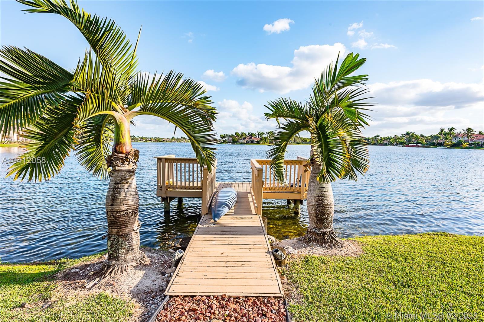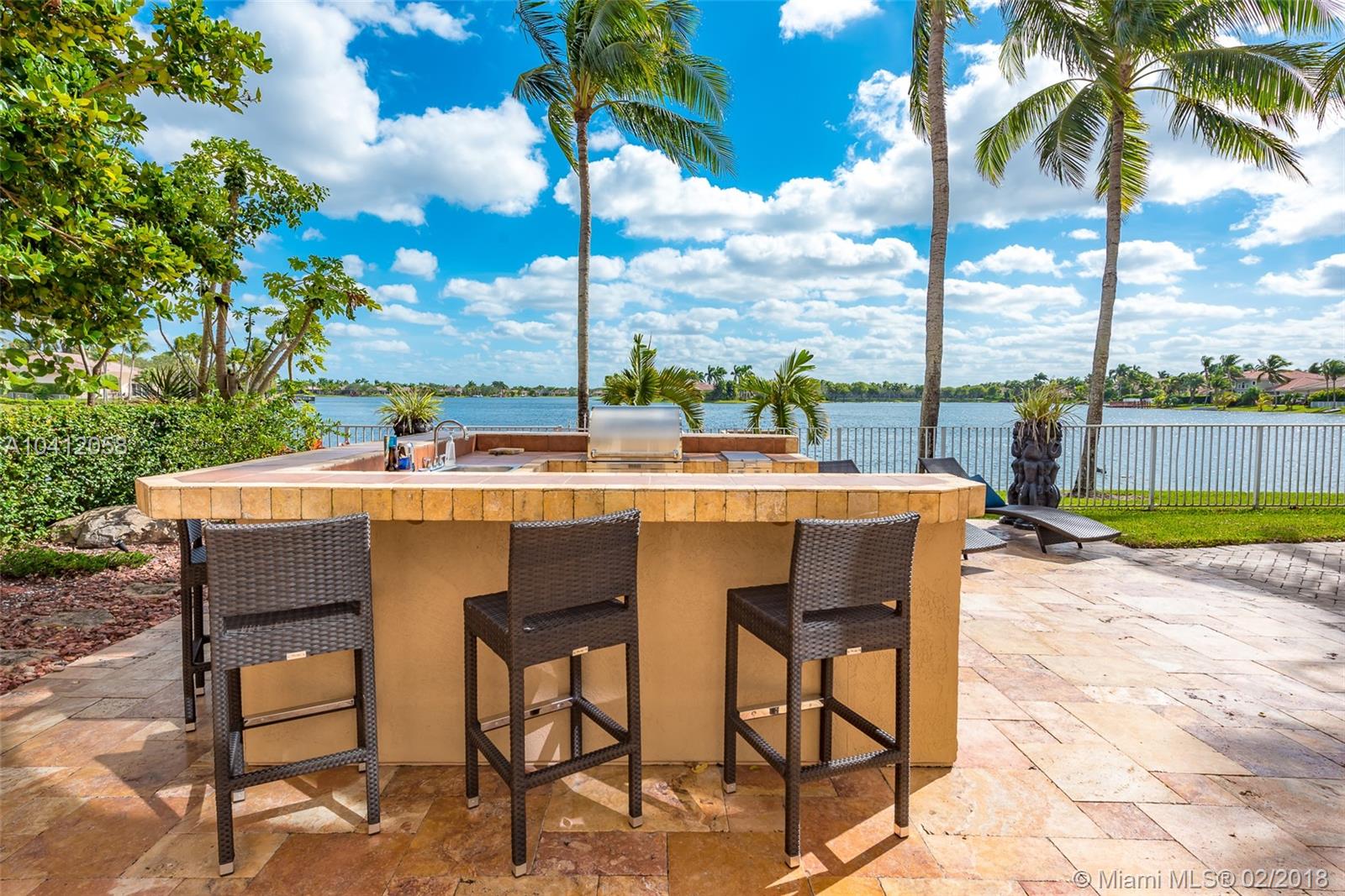 Owner motivated! This is a two-story single family home in a quiet gated community that will leave you mesmerized by the unrestricted water view. This is an Agent owned home has 5 bed rooms, 4 baths, 3 car garage, boat dock and full kitchen outside for entertaining. The home includes LED & Sonos speakers throughout, Wink & Nest controlled thermostats. Kitchen has been published in several trade magazines and has top of the line Miele appliances. Custom walk-in Wine Cellar with thermostat. Centralized data hub for all electronics, tank-less water heater, and custom made impact windows & doors for backyard. The Most of the furniture inside the home was custom made in Dubai and can be negotiated in addition to purchase of the home. All bathrooms have imported tile...