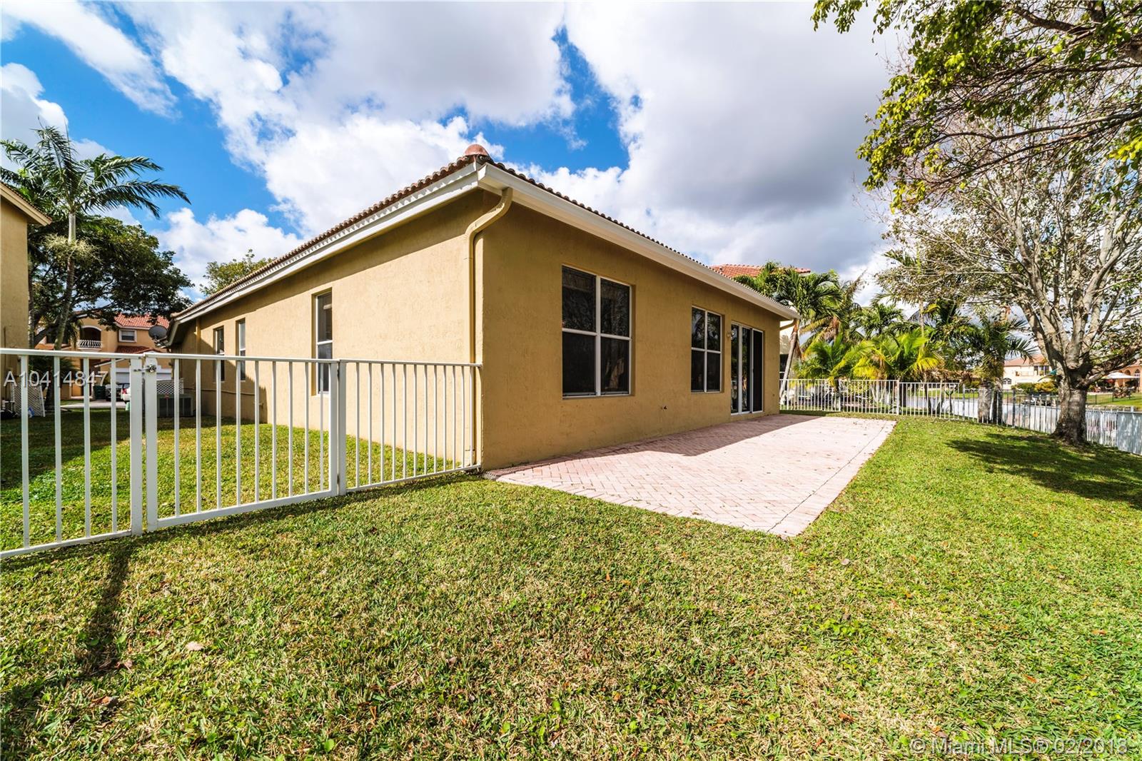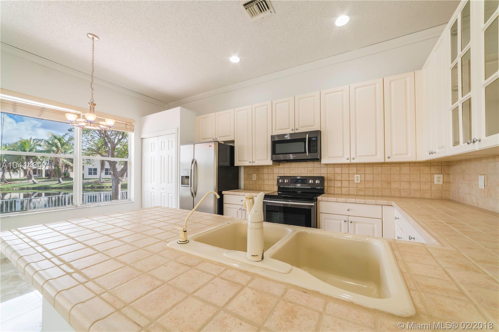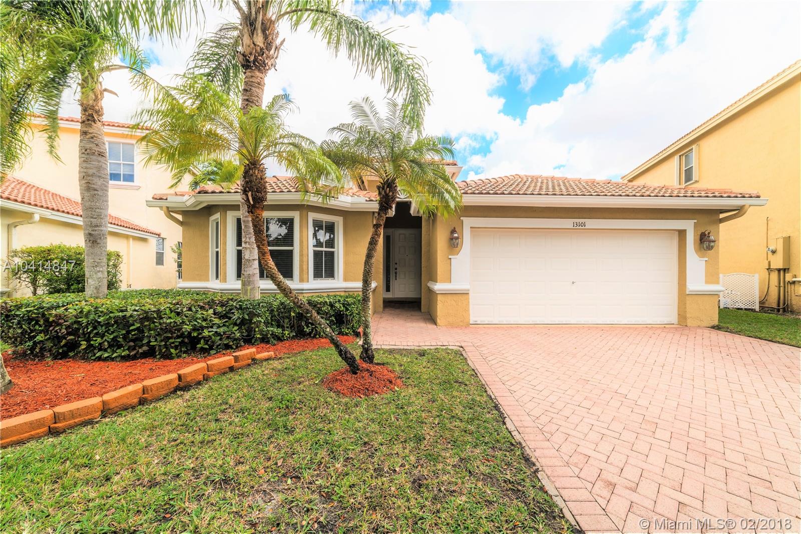 Beautiful one-story lakefront 4 bed/3 full bath home with stunning lake views and tropical palm trees. Located in tranquil, desirable gated Monarch Lakes community. Spacious, bright and airy with high ceilings and crown molding throughout. Recently painted interior and exterior, well maintained and impeccably clean. Separate dining and living room, large master bedroom with custom closet cabinetry, and front bedrooms perfect for office/in-laws. Open kitchen with SS appliances and family room overlook scenic, serene lake and fenced-in wide back patio with pavers from end to end. Expansive two-car garage. Includes water softener and screen projector for entertainment. Centrally located near schools, shopping and major highways. Rarely available find in lovely Mariposa Isles. Tour on YouTube.
