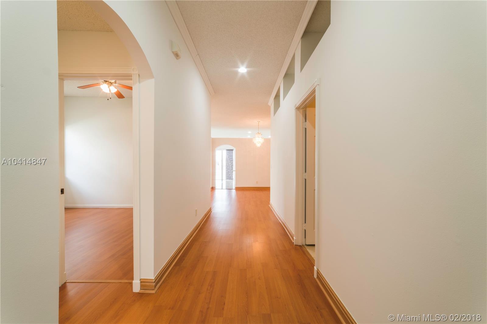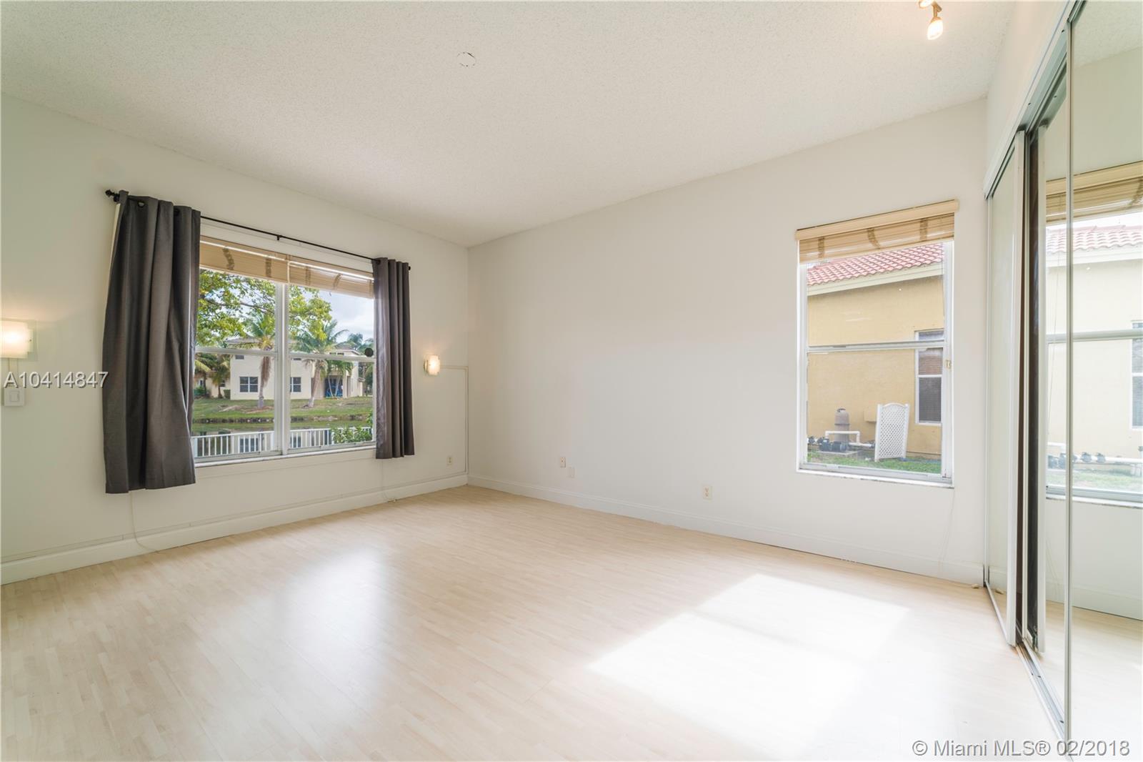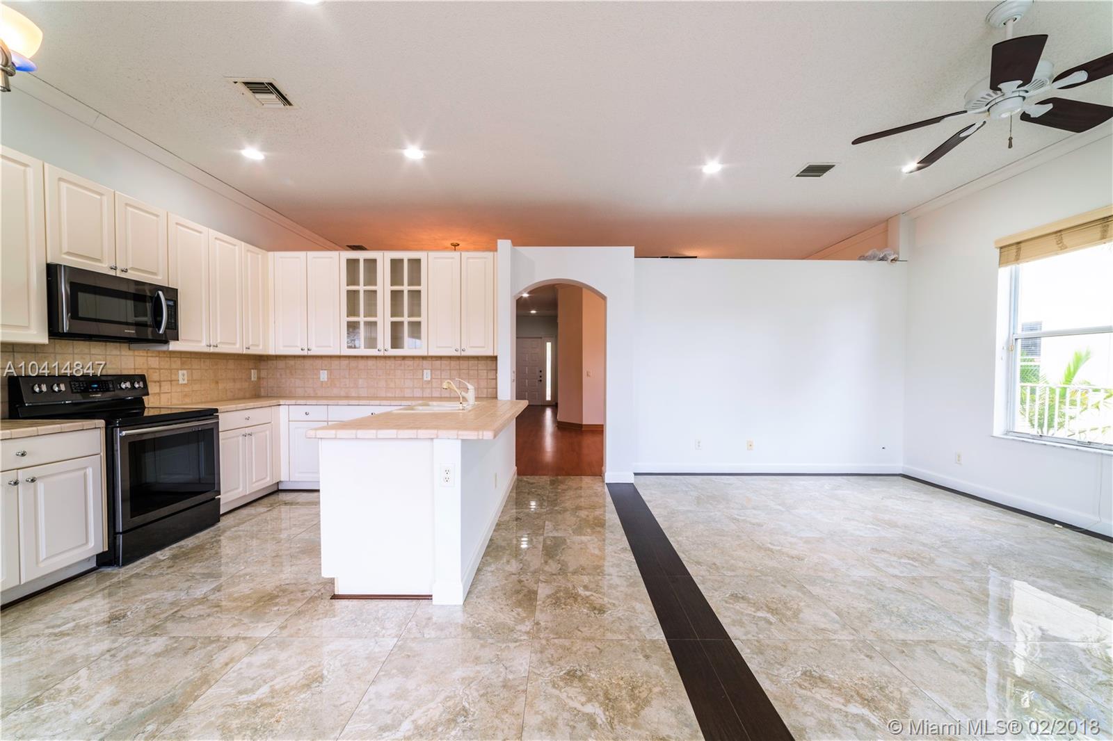 Beautiful one-story lakefront 4 bed/3 full bath home with stunning lake views and tropical palm trees. Located in tranquil, desirable gated Monarch Lakes community. Spacious, bright and airy with high ceilings and crown molding throughout. Recently painted interior and exterior, well maintained and impeccably clean. Separate dining and living room, large master bedroom with custom closet cabinetry, and front bedrooms perfect for office/in-laws. Open kitchen with SS appliances and family room overlook scenic, serene lake and fenced-in wide back patio with pavers from end to end. Expansive two-car garage. Includes water softener and screen projector for entertainment. Centrally located near schools, shopping and major highways. Rarely available find in lovely Mariposa Isles. Tour on YouTube.