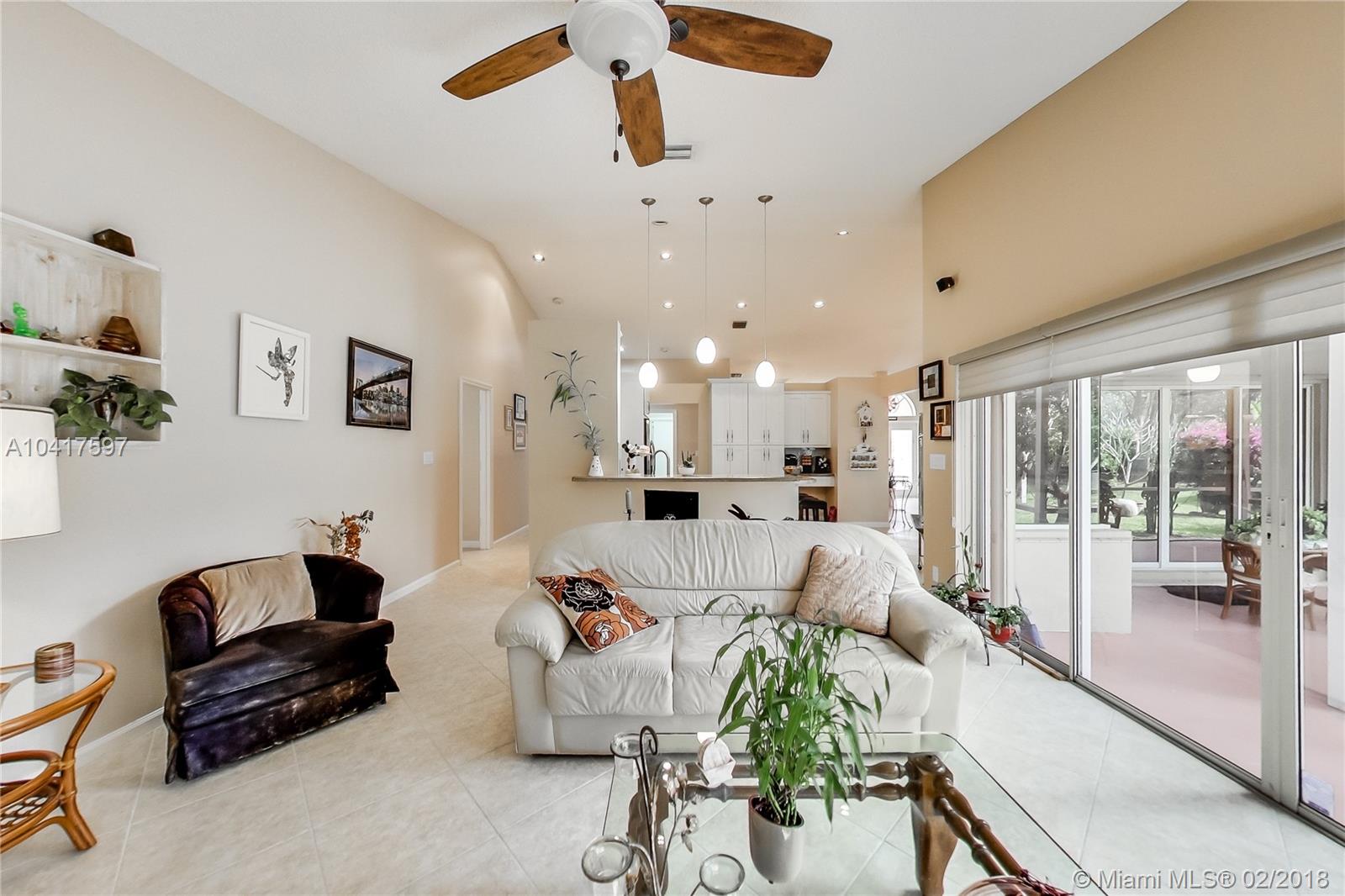 Completely remodeled home! with Cathedral Ceilings, Marble Island Kitchen Countertop, Stainless Steel Appliances, Walk in Closets throughout, Jack and Jill bathroom, Tile all around, Customized Hunter Douglas Blinds, Screened Patio, Pull Out drawers in kitchen pantry, WHOLE HOUSE Generator, and Alarm System. FRUIT TREES! such as banana, mango, avocado, orange, and limequat. Includes Hurricane Shutters, BRAND NEW LG Washer and Dryer, Sprinkler System, Landscape Lighting, and TWO refrigerators! Close to Sawgrass Highway, great schools, and major shopping centers!