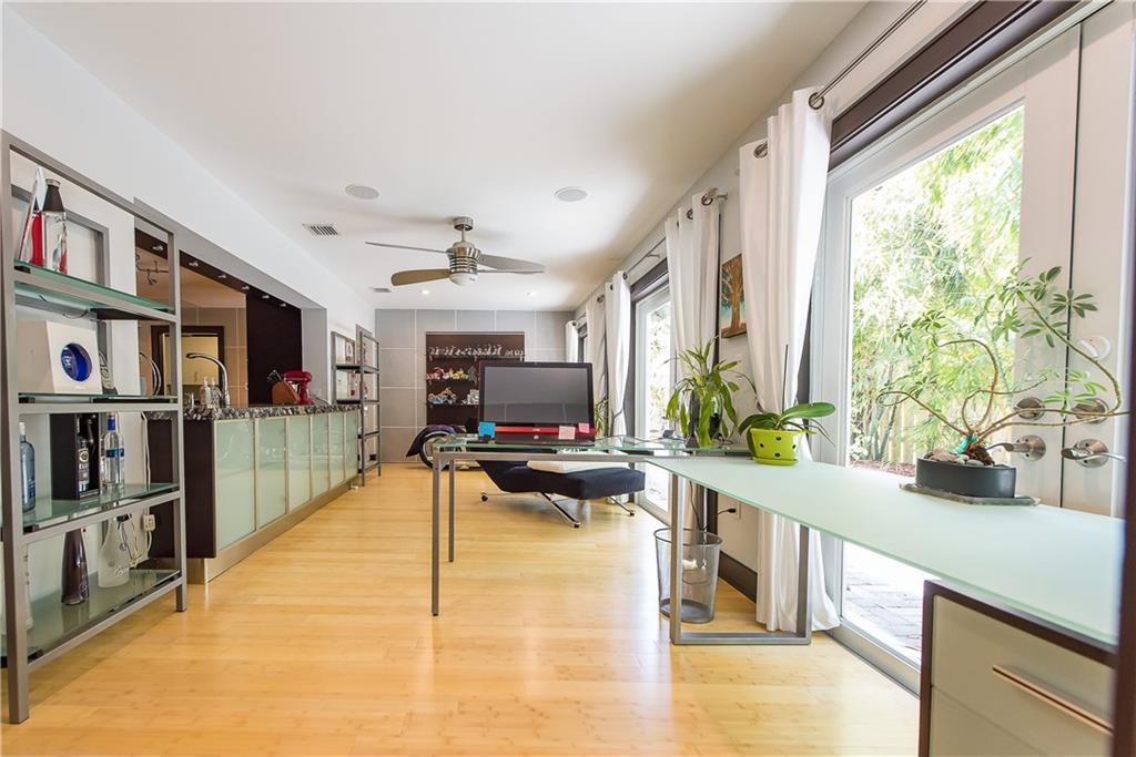 Remodeled in 2017 - Designed by award winning architect newly renovated and reimagined. Situated on a private drive of only 23 residences beneath a leafy hammock of Florida natives boasting a welcoming front porch and circular drive. The warm Key West exterior gives way to crisp, cool modern interiors of organic finishes and an open floor plan. The open chef's kitchen with 16' cooking island divides the Great room, Family room and Den yet provides ample views of the 20'x7' lap pool and private yard.