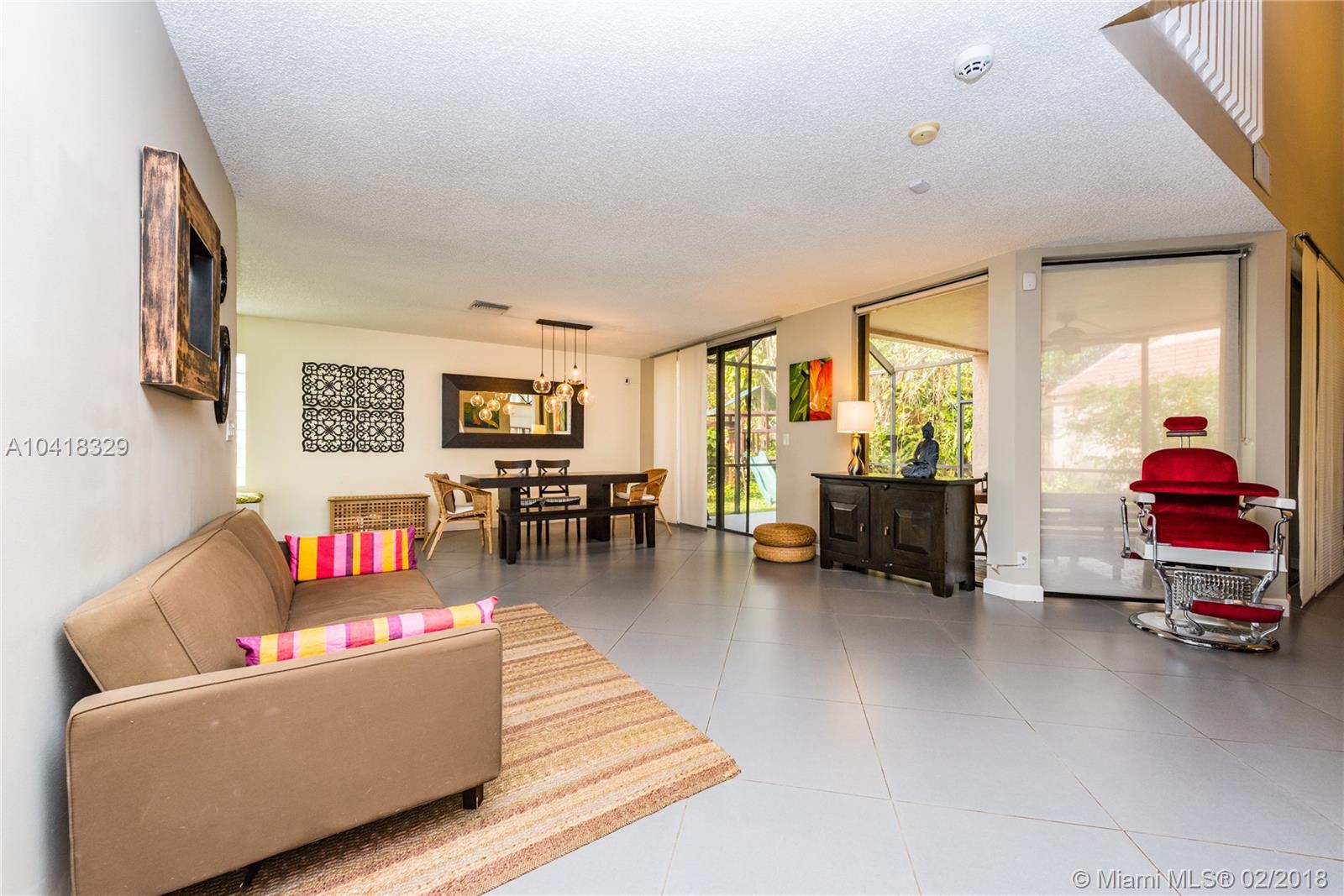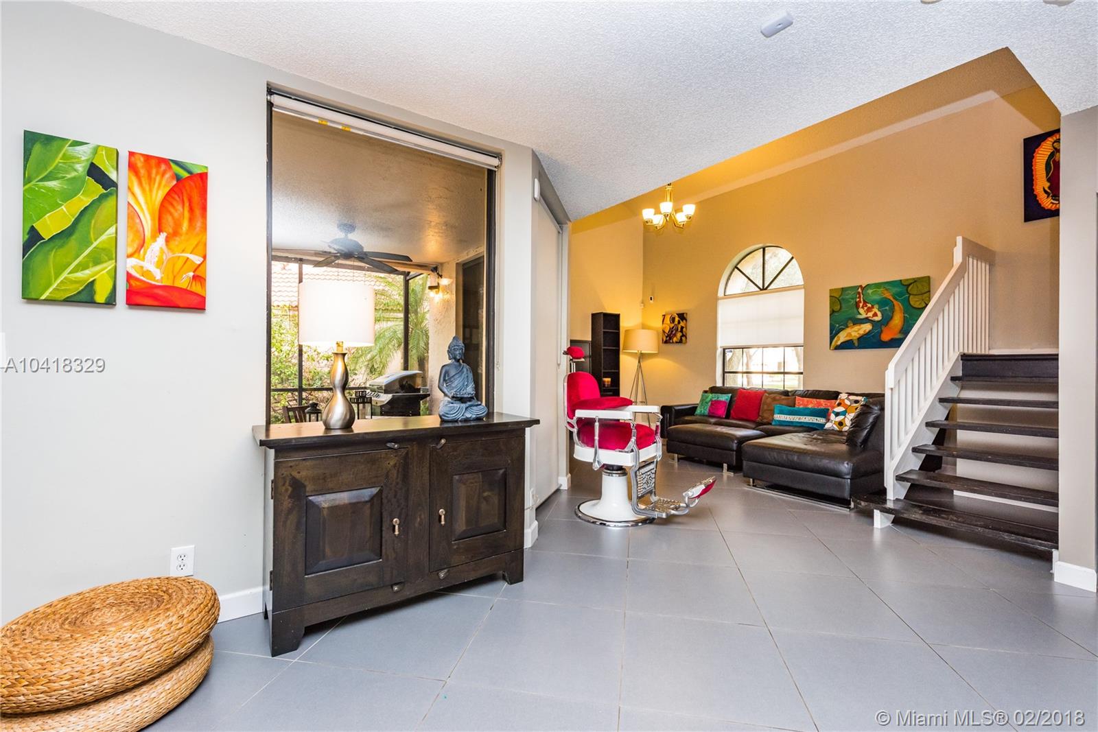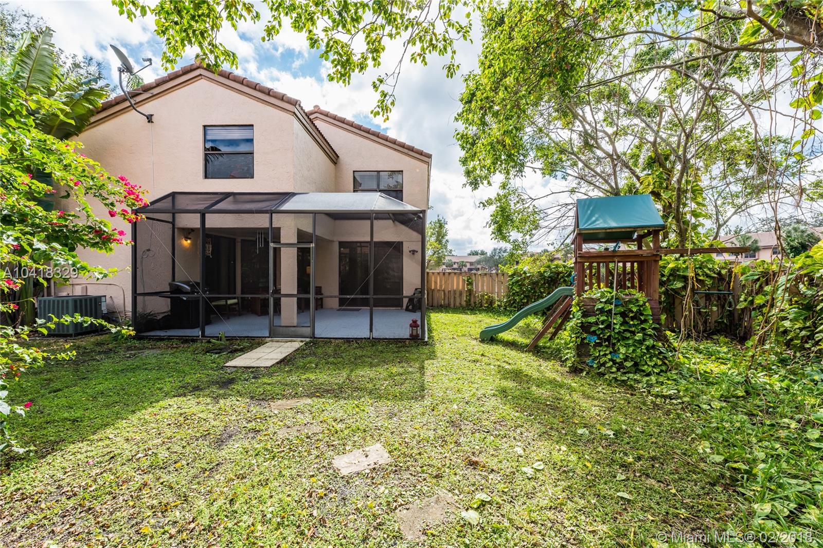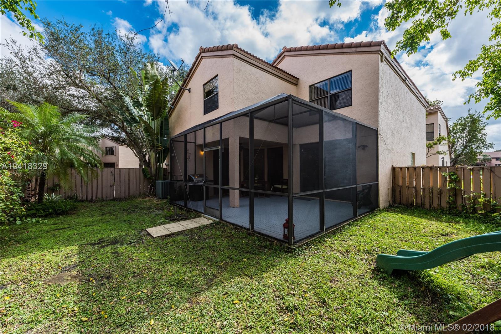 Imagine driving home to a beautiful house within this quiet neighborhood in Plantation nestled among landscaped streets and parks and lakes with fountains. Welcome home to Fountain Springs. This house features an open floor plan with porcelain flooring throughout the first floor; updated kitchen with island for added counter space, vaulted ceilings in the living area and a screened terrace for enjoying the outdoors. Up to the second floor you'll find engineered wood flooring throughout the 4 bedrooms, one being the spacious master suite complete with over-sized shower, double sink vanity and large walk-in closet. The home sits on a large lot with generous sized backyard with the Fountain Springs Community pool and park just a short walk away.