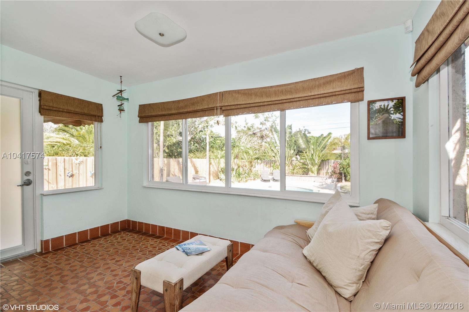 Tropical oasis awaits!!! This home has been restored and renovated to reflect a true Florida feel. Wood flooring in living/dining room and bedrooms. The bright gourmet kitchen has been totally renovated. Samsung SS appliances, deep, double SS sink, granite counter-tops, under counter lighting with pool and garden views! Bathrooms have been renovated. Impact windows. Large laundry room with washer/dryer and plenty of storage space. Newer A/C and water heater. Inviting sun room leads you to your own private pool with deck, sandy beach area and extensive landscaping. The 10,000+ sq. ft. yard is beautifully landscaped with fruit trees, orchid trees, swaying palms, a tree house and is completely fenced for privacy. No need to look further!! This is the one you have been waiting for!!!