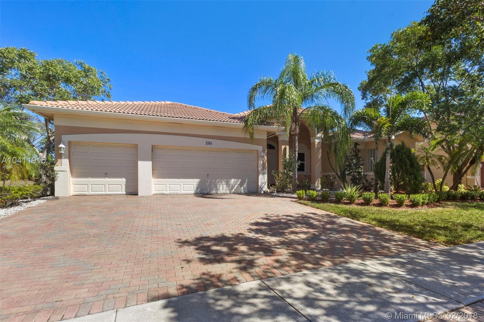 Beautiful one story home in the prestigious gated community of Harbor Lakes Estates. This home features 5 bedrooms, 3 baths and a 3 car garages. Triple glass high efficiency impact windows and patio doors throughout the house, recently painted, natural slate flooring in all the common areas, high ceilings, upgraded kitchen with new stainless steel appliances, granite countertops, 5.1 home theater system, Hunter Douglas window treatments, custom closets, dual Nest thermostats, private backyard overlooking the preserve with a free style pool to enjoy the outdoors with complete privacy. A must see!