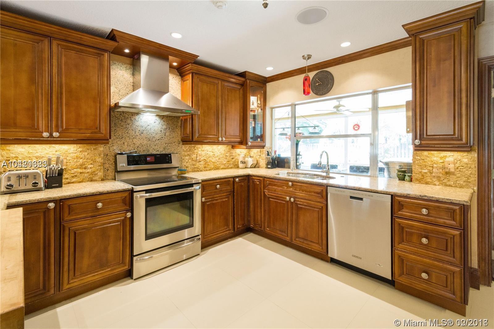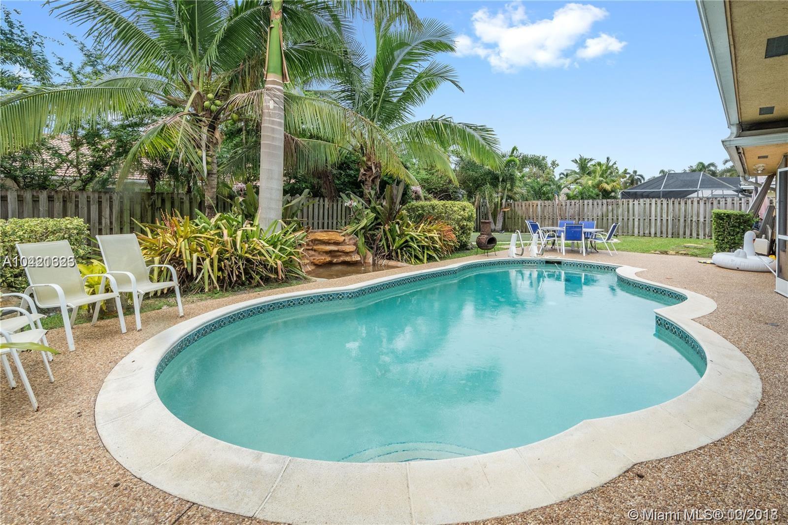 Spacious remodeled pool home, split floor plan, 4 bedrooms and 3 bathrooms. hardwood floors, high impact windows and doors, hurricane shutters, built-in office, steam shower, security and music systems, crown moldings,gourmet kitchen, wine cooler, jacuzzi tub, etc.,Golf putting green in the backyard! Updated kitchen with wood cabinets, breakfast area, granite counter tops, stainless steel appliances, updated bathrooms, 2 master suites, screened and covered patio overlooking pool!...Great for entertaining. Gated community. Close to Plantation Preserve Golf Course and Club.