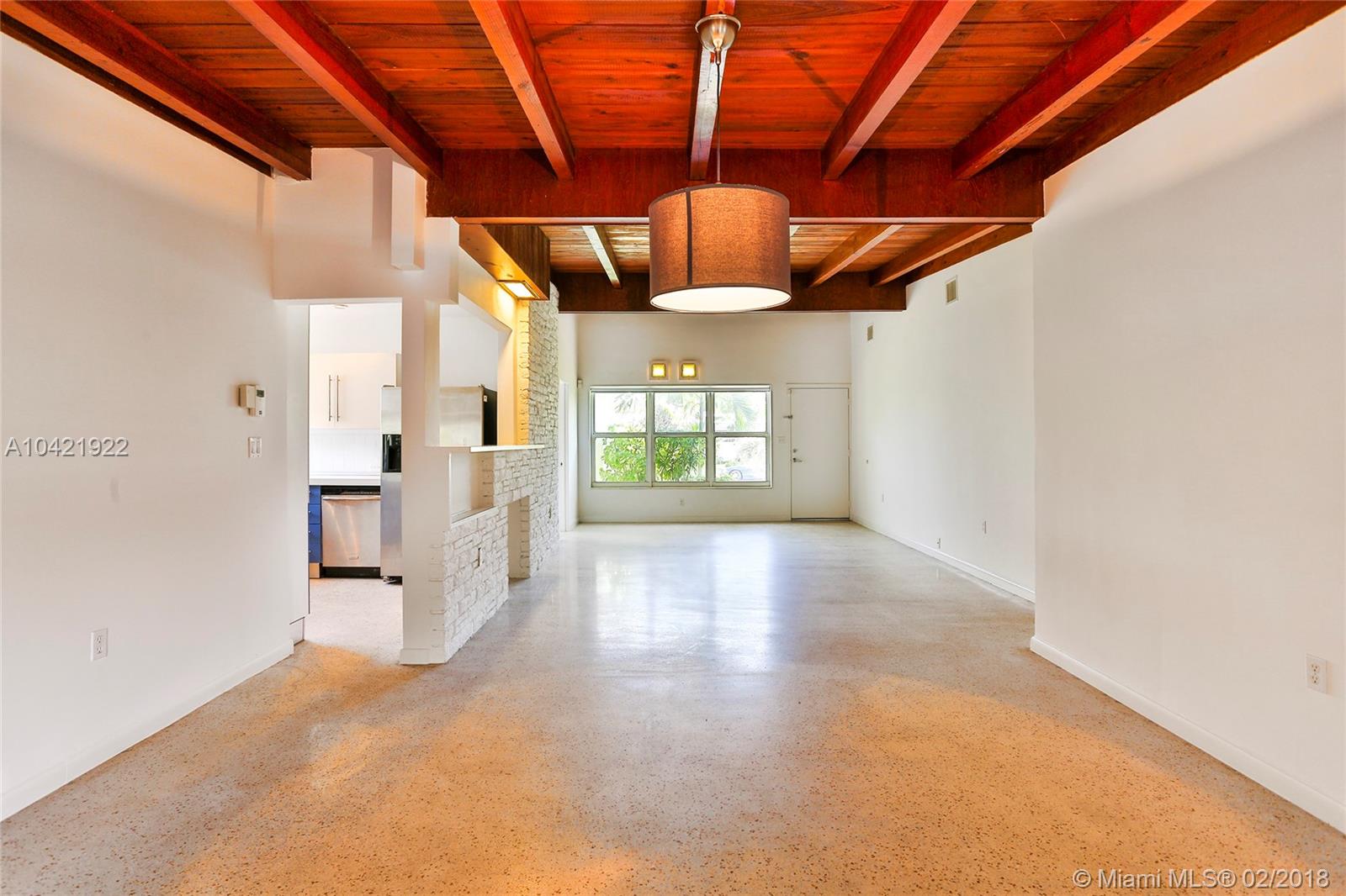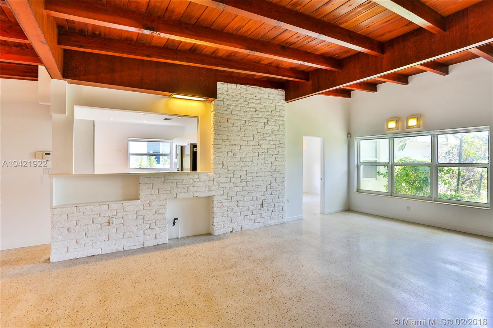 Beautiful, modern home with a spacious, open floor plan and terrazzo floors throughout. Split floor plan with 3 bedrooms, 3 full bathrooms, an office, and a 1-car garage. High wood beamed ceilings and a decorative fire place add to the charm of this comfortable home. A combination living and dining area leads to a large family room at the back of the house, which opens out to the deck in the private, fenced backyard with shade trees and tropical landscaping. Walk to the beach, shopping, community center/pool, Bal Harbor Shops, Four Seasons Surf Club. Zoned for A rated Bay Harbor Schools. Call today!