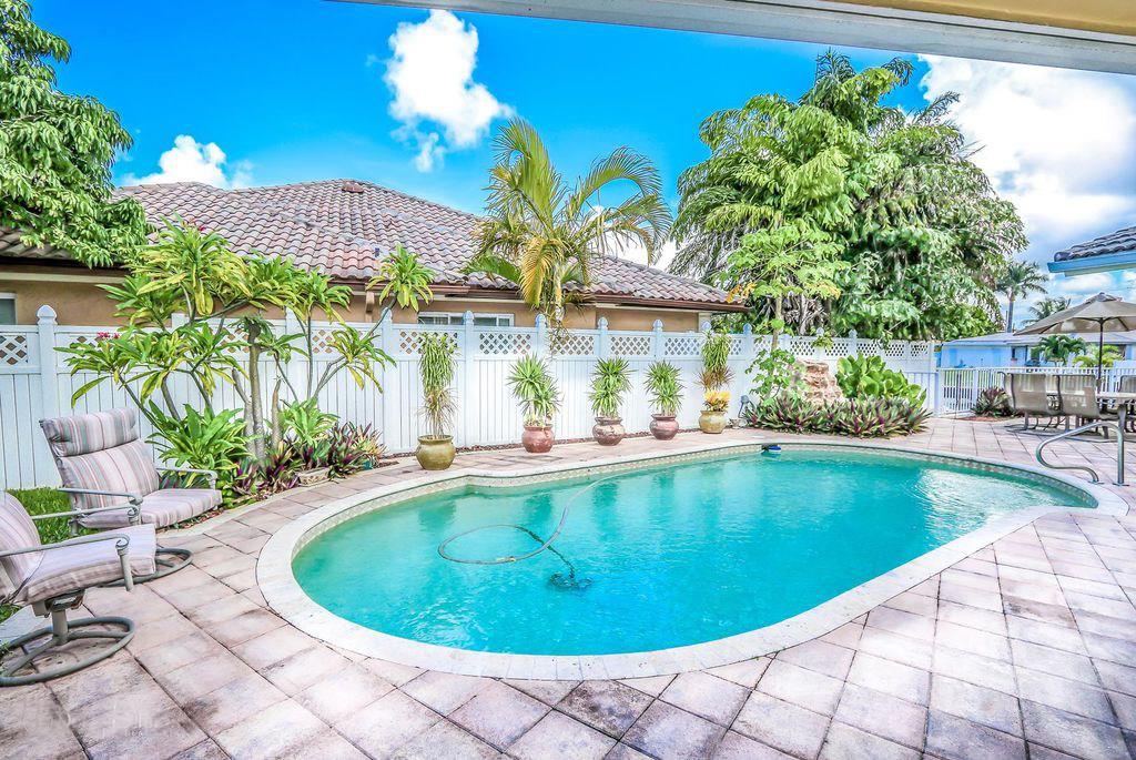 Beautiful Bermuda Riviera updated pool home on the intracoastal waterway. Spacious & open split-bedroom floorplan. Large, private backyard with fire-pit & spa perfect for relaxing, entertaining, and room for children and pets to play. Enjoy sunset views of the intracoastal. New roof, hurricane impact windows and doors, updated electrical. Large 2 car garage with attic space. Quiet neighborhood with walking trail & gatehouse at entrance. Bayview elementary. Walk to the beach, shopping, & restaurants.