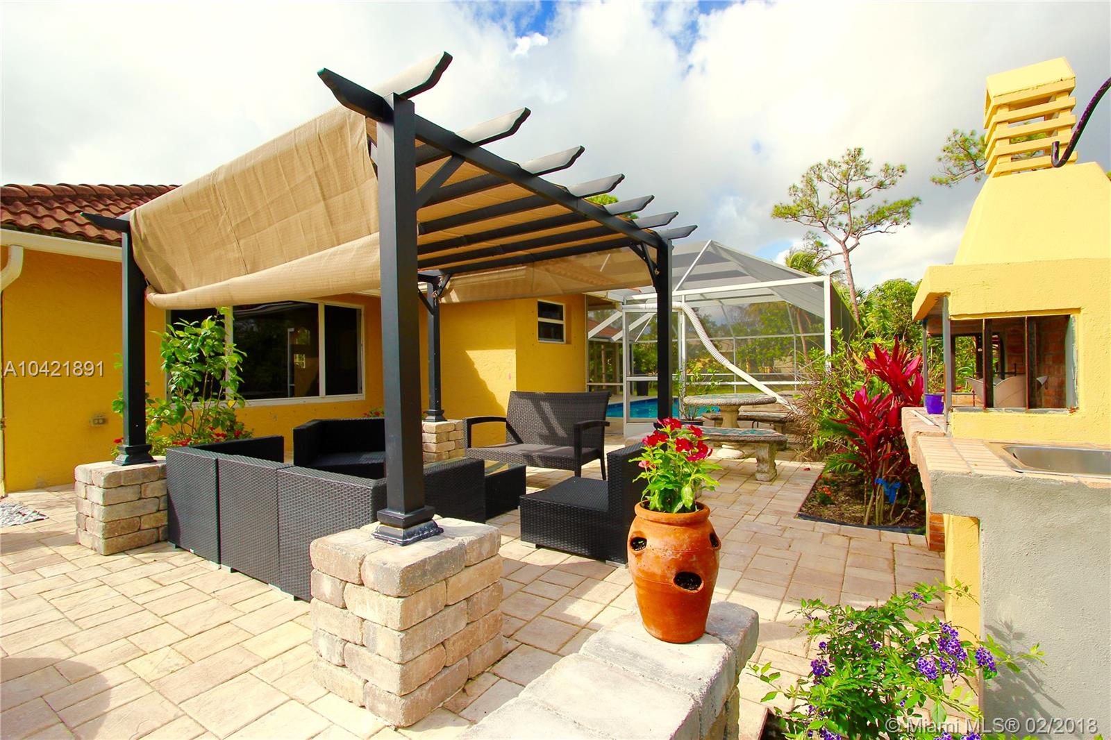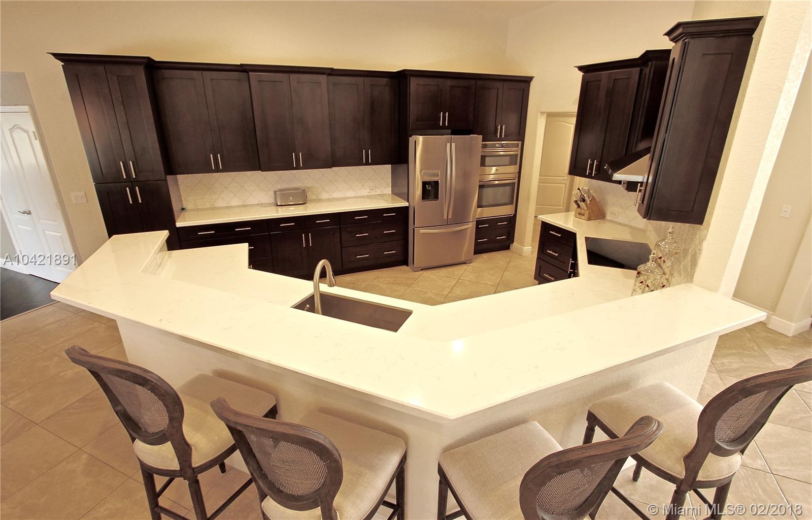 Gorgeous 4-bedroom, 3-full bathroom home in beautiful location. This property offers 2,921 sf of living space and a completely fenced lot, size of over one acre, perfect for family gatherings! Wonderful features: cozy swimming pool with spa just recently refinished, new kitchen cabinets, stainless steel appliances with wall oven, modern quartz counter tops, wood style flooring, remodeled bathrooms, freshly painted, central sound system, New 2015 central a/c 16 seer for energy efficiency, attached three-car garage, huge back yard, reverse osmosis water filtration system, screen pool area, beautiful relaxed outdoor space with built-in bbq grill, fire pit and so much more! Come and take a look at this beauty….Don’t miss out!