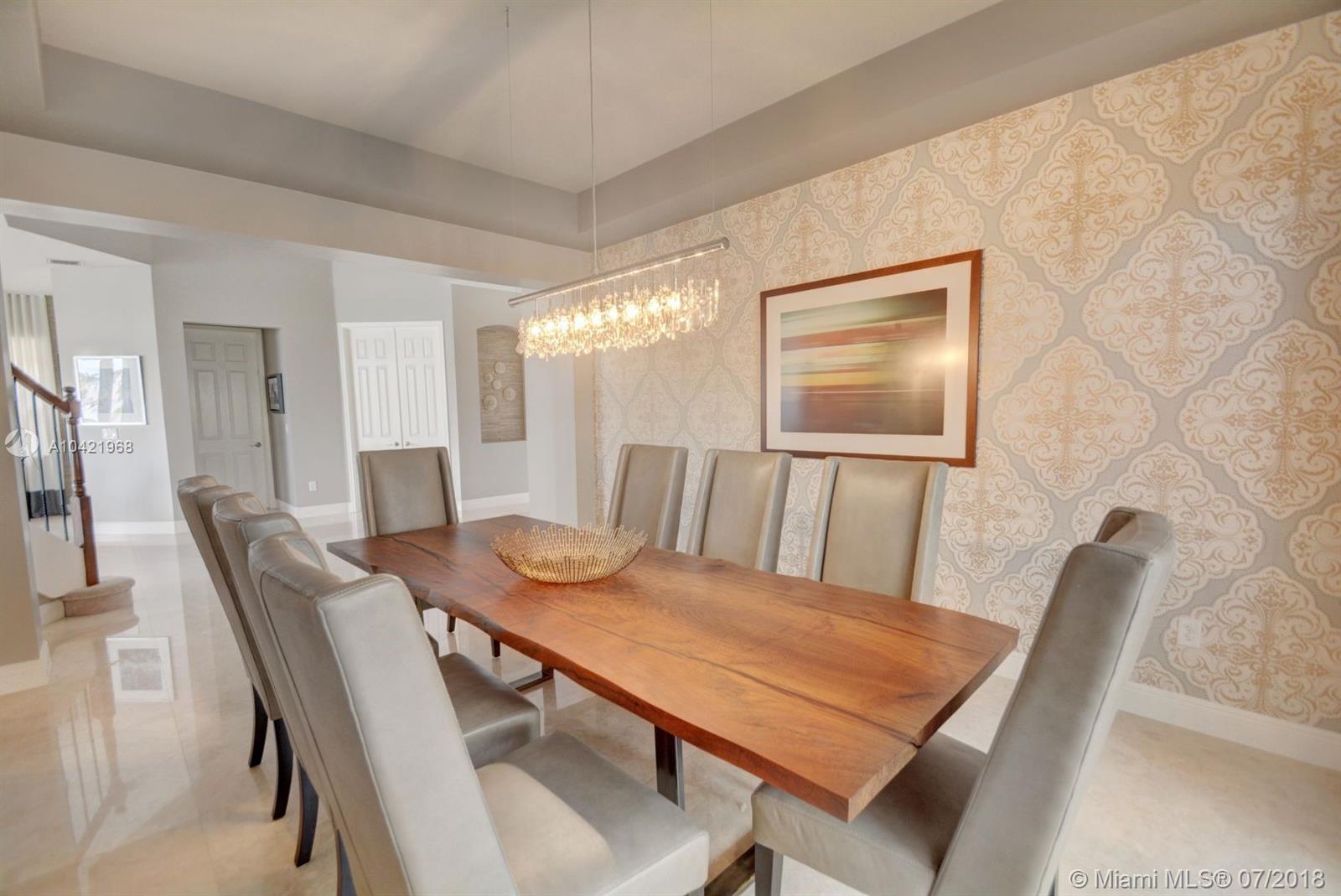 MAGNIFICENT LAKEFRONT, designer perfection 5143 total square feet, 3'x 3' Crema Marfil marble flooring throughout first floor, upgraded granite kitchen with butler’s pantry, stainless steel appliances, double ovens, custom linen drapes adorn living room and family room areas, 8 foot tall glass French doors lead to the backyard with waterfront views, accordion shutters and impact windows, new lighting, freshly painted, 2 newly remodeled bathrooms, huge master bedroom suite with outside balcony, extra-large walk-in closet with built-ins, master bath with whirlpool tub, glass enclosed double head shower, formal dining room, fenced yard. Located inside Riviera Isles Resort-Style community, 24/7 guard gated. Amenities include: tennis & basketball courts, fitness center, lagoon-style pool.