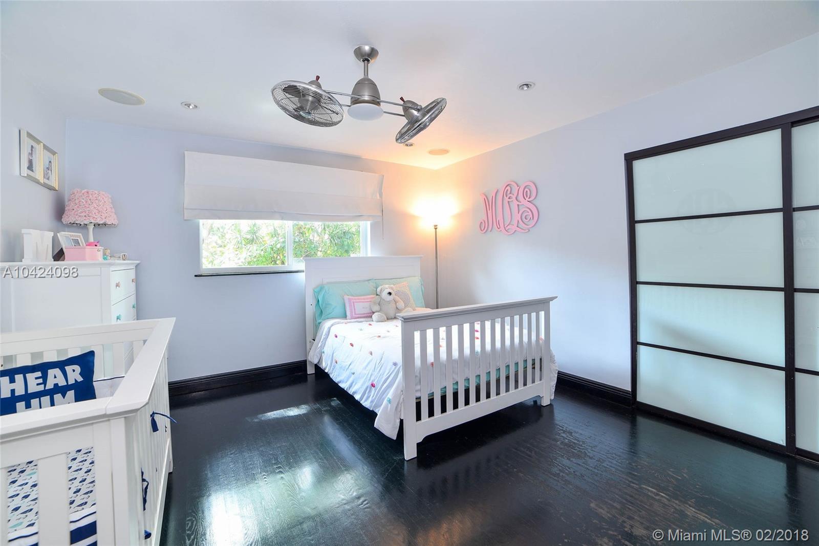 Located in the heart of Coral Gables, this over sized gated corner lot with modern home is sure to please. Beautiful ebony stained hardwood floors throughout, vaulted ceiling in living areas, large bedrooms and closets (1 walk-in), contemporary kitchen with stainless steel counter tops, solid concrete island, Bosch and subzero appliances and solar panels on roof. Third bedroom was converted to a movie theater but can easily be converted back to a bedroom. The home is on a low traffic street with minimal movement. Within walking distance to renovated Miracle Mile, Merrick Park, Vicky Bakery and about 1 block from a free city trolley stop.
