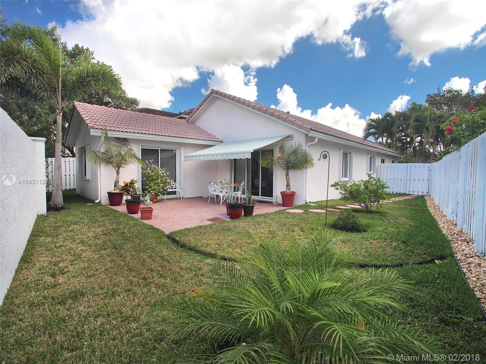 BEAUTIFUL 3 BEDROOM 2 BATHROOM HOME WITH A 2 CAR GARAGE IN THE HIGHLY DESIRABLE COMMUNITY OF SAWGRASS VILLAGE. THIS EXCEPTIONALLY MAINTAINED HOME IS SPACIOUS WITH AN OPEN FLOOR PLAN AND LOTS OF NATURAL LIGHT AND A PRIVATE WELL MANICURED FENCED IN BACK YARD. HOME IS WITHIN WALKING DISTANCE TO A RATED ELEMENTARY SCHOOL AND IS VERY CLOSE TO SAWGRASS MILLS MALL, GREAT RESTAURANTS, WITH EASY ACCESS TO 595 AND SAWGRASS EXPRESSWAY. VERY RARE THAT HOMES ARE LISTED IN THIS NEIGHBORHOOD. THE PROPERTY IS EQUIPPED WITH ACCORDION HURRICANE SHUTTERS.