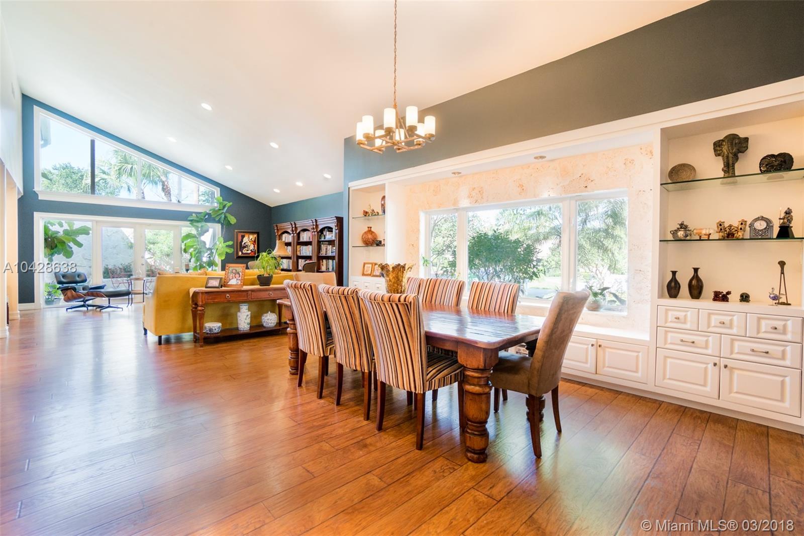 Nestled in the beautiful community of Pine Bay Estates is this stunning & impressive estate home situated on expansive corner lot. The home features a grand & welcoming double door entrance which opens to a foyer w/ vaulted ceiling which continues through the main living areas. Contemporary style layout with open kitchen to family room great for entertaining guests & family that also overlooks the pool. Split layout & beautifully appointed master suite with private courtyard and tons of natural light. The backyard is one of the homes best features & has a huge patio w/ double ceiling height.The home has been completely remodeled within the last 10 years & features impact windows, stainless steel appliances, wet bar, loft area used as an office & large bedrooms. Call for private showing!