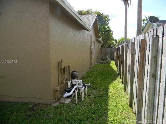 Well maintained concrete block home with side entry garage in quiet neighborhood. Minutes to Sawgrass Mall, BBT Ice Arena and Ft. Lauderdale Airport and beaches. New roof placed 03/18. Updated kitchen with granite counter tops and cabinet lighting. New Diamond bright pool resurfacing 3 years ago and tiles. A/C 3 years old. Fenced yard with lovely landscaping. Hardwood floors placed 03/18. Jacuzzi tub in spacious main bath and 2 charming,large spare bedrooms. Master bedroom suite with full bath. Burglar alarm. Home to be sold AS IS.