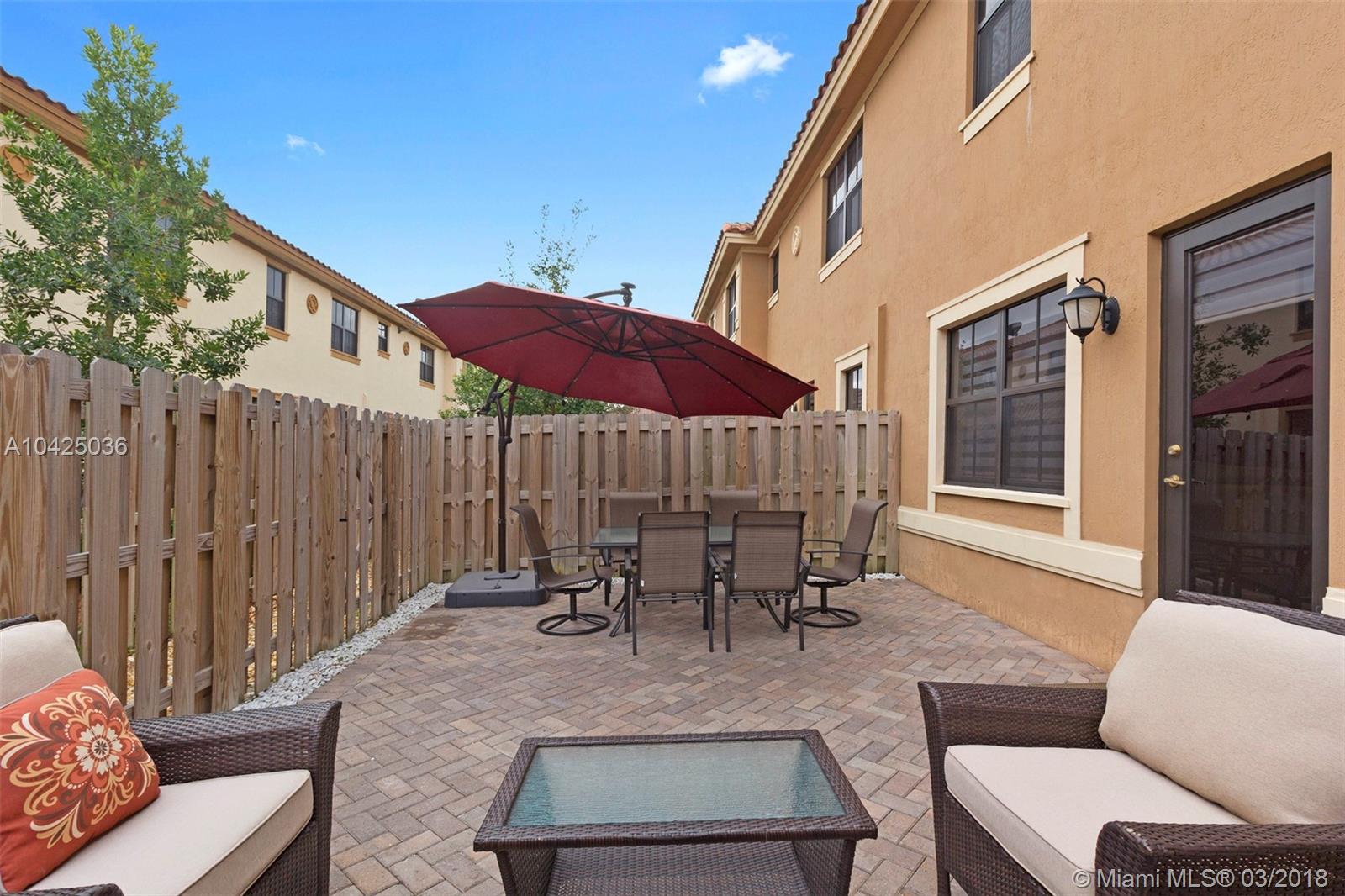 Shows like a MODEL!!! Townhouse 4/3.5 , Soaring 9' ceilings, Open floor plan!!NO EXPENSE SPARED!! Upgraded 24x24 porcelain floors throughout living areas, Real wood flooring on staircase and bedrooms, 6 Recessed lighting in living room, designer wallpaper, Upgraded kitchen with espresso cabinetry, Granite counter tops, Back Splash, Wrap around wood on kitchen island, Stainless Steel appliances, Gorgeous light fixtures, fans, Spacious bedrooms, Large fenced patio with extended pavers, Washer & Dryer on second floor, Smart home ready with Impact Windows & Doors!! Enjoy Resort Style clubhouse with gym, 2 pools, playgrounds, waterslides, tennis, basketball courts!!!