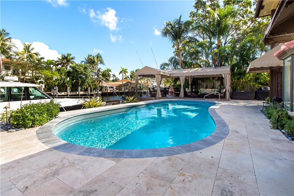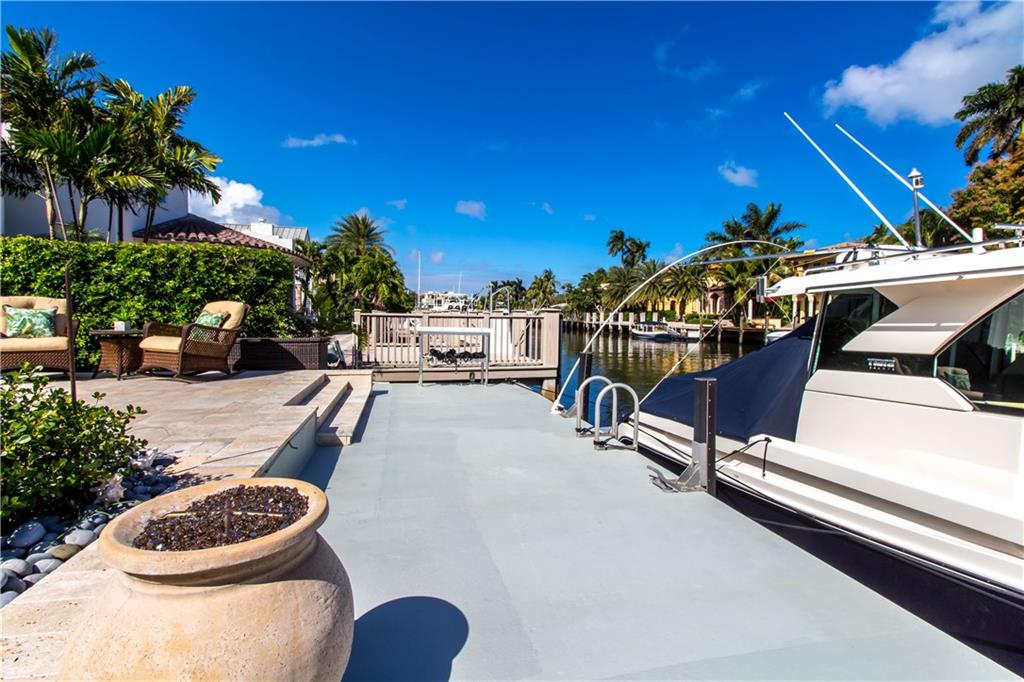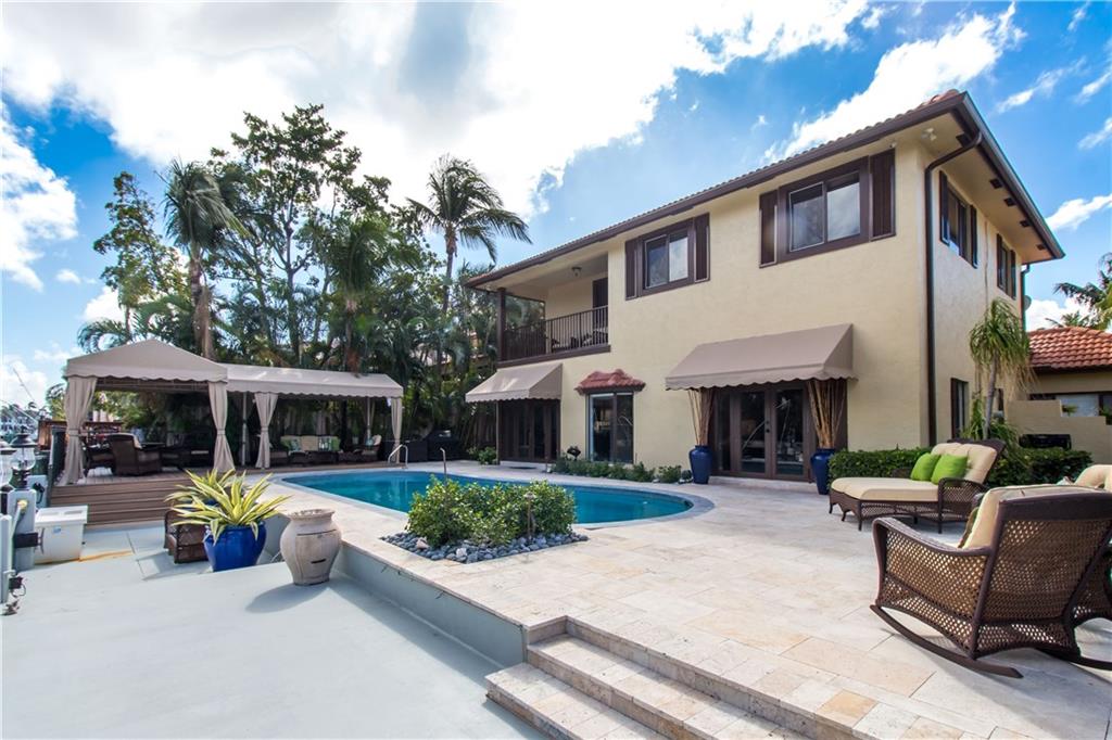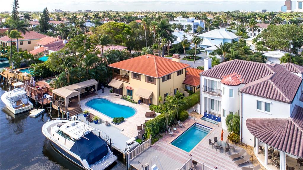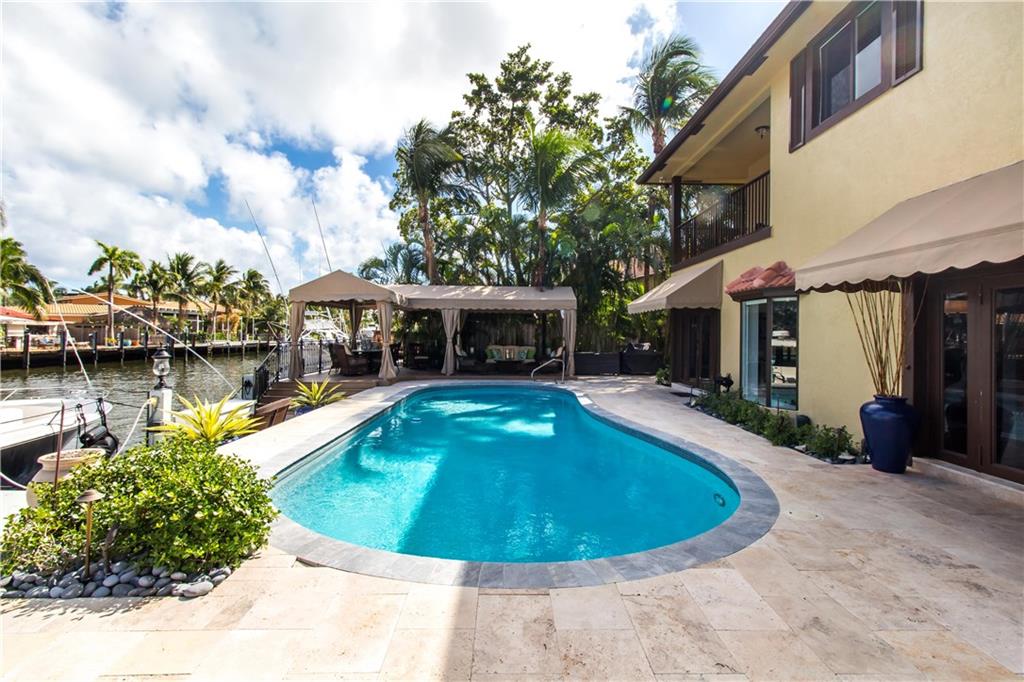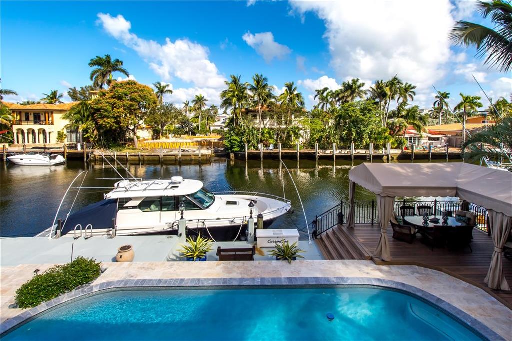 On a generously sized lot of 9,487 sq.ft & nestled onto the east side of Bontona Avenue just south of Las Olas with 75' on deep water with a newer concrete dock offering water and electricity sits this wonderful, updated home just waiting for you to wake up and enjoy a rich, savory morning coffee on your private east facing master bedroom balcony overlooking the waterfront gazebo, sparkling pool & waterway. Pool has a heater & chiller, new kitchen, impact windows, newer roof, security system & much more!