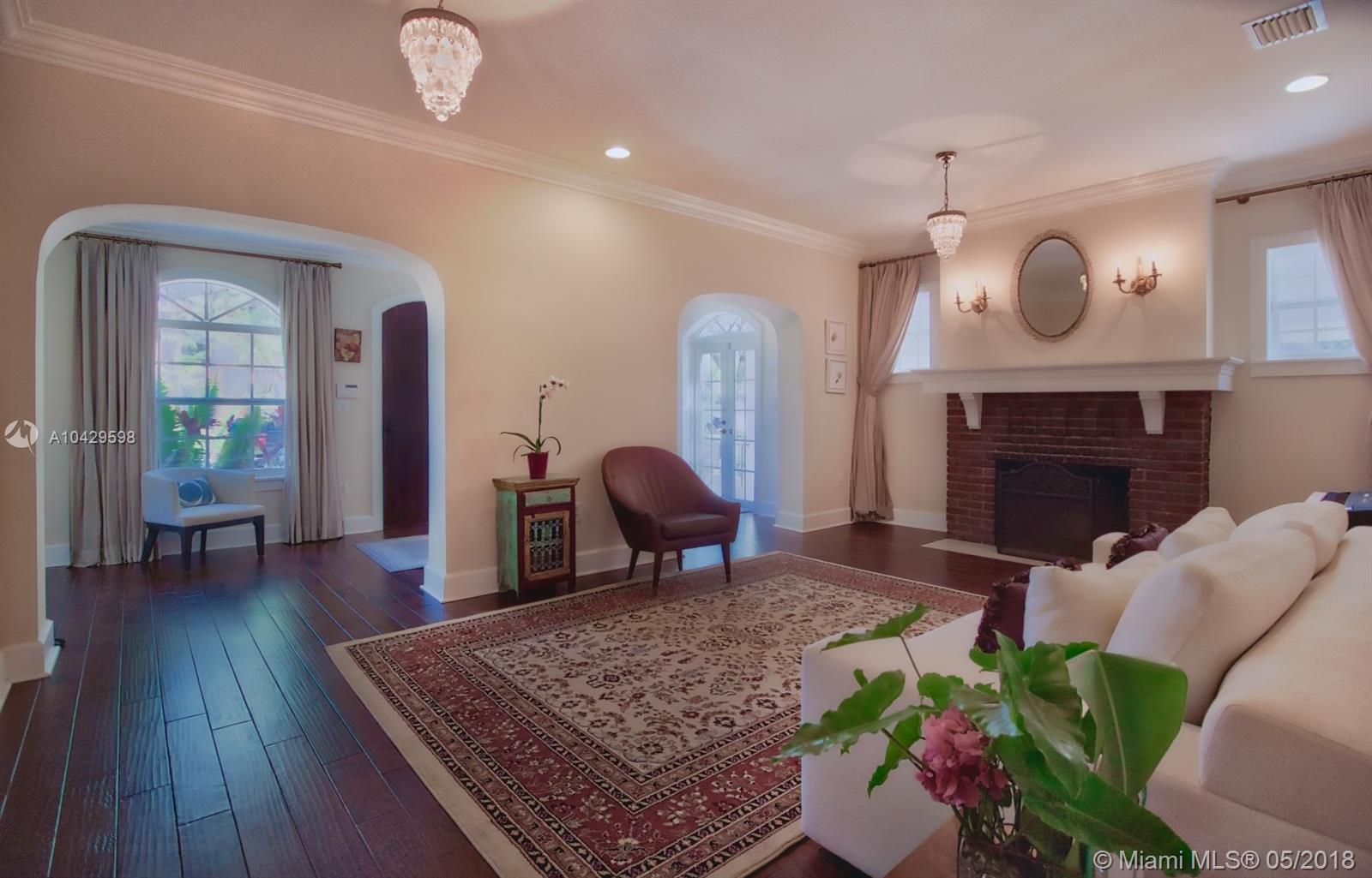Old world & modern luxury mingle in this Mediterranean Revival gem. Designed by renowned Architect H. George Fink, historic designated in 1997, after major expansion and remodeling. High ceilings of exposed beam featured throughout many rooms, brick accents on arches and chimney and all brick fireplace, wide plank hardwood floors, porches & verandas honor the history of this home. Gourmet kitchen with island, chef grade appliances, formal living, formal dining room, enormous family room flows to covered terrace. House wraps around a courtyard & fountain inspired by southern Spain architecture. Abundant closets, large baths, pool with sheer descent, plus large cabana. Recent re-roof, tented, AC, impact windows/doors. Septic and pool date to 2002. Practical, turnkey and prefect for family!