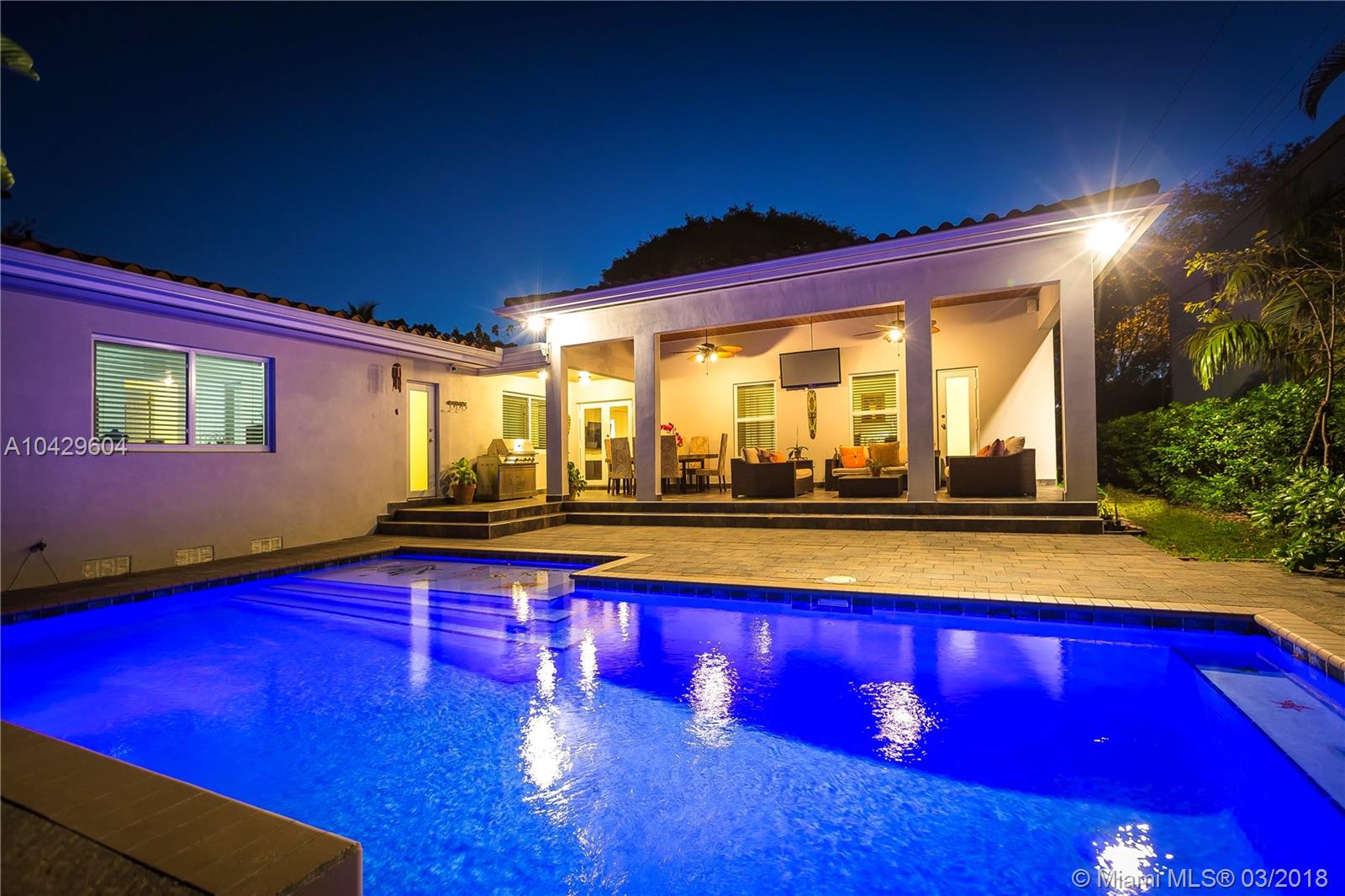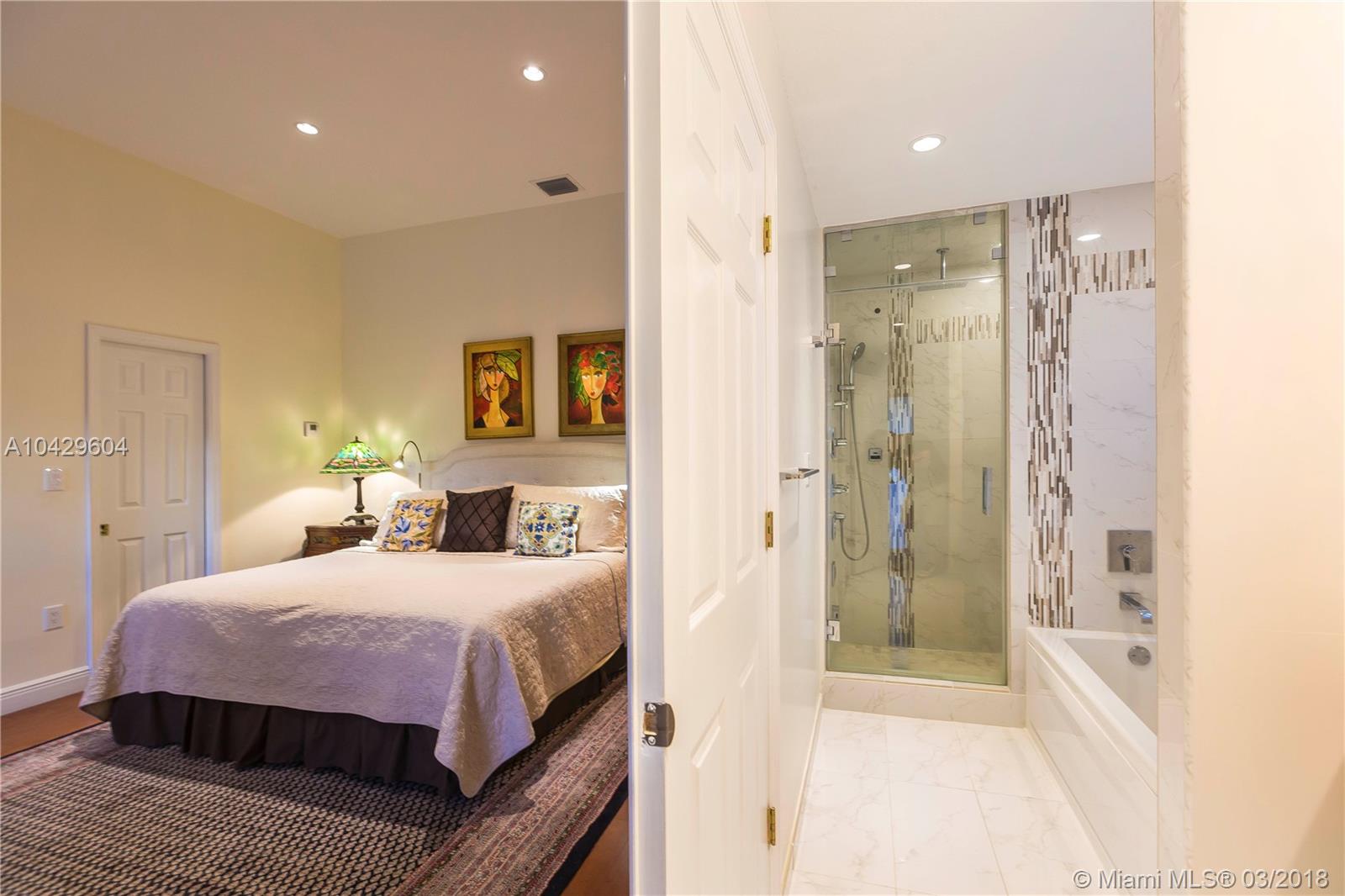 Impeccable five-bedroom, Three and one-half Bath home in one of the most prestigious streets, in the heart of Coral Gables. Fabulous Heated Pool with waterfall, and walk in Beach. Completely updated Kitchen and Bathrooms, Marble Countertops, stainless steel appliances, fabulous white cabinetry and LED lighting. Impact windows, circular driveway, corner lot, two car garage with separate driveway, two master bedrooms, main master has steam shower and high ceilings. Beautifully landscaped 10,000 sq.ft. lot. Turn-key luxury just steps from downtown Gables.