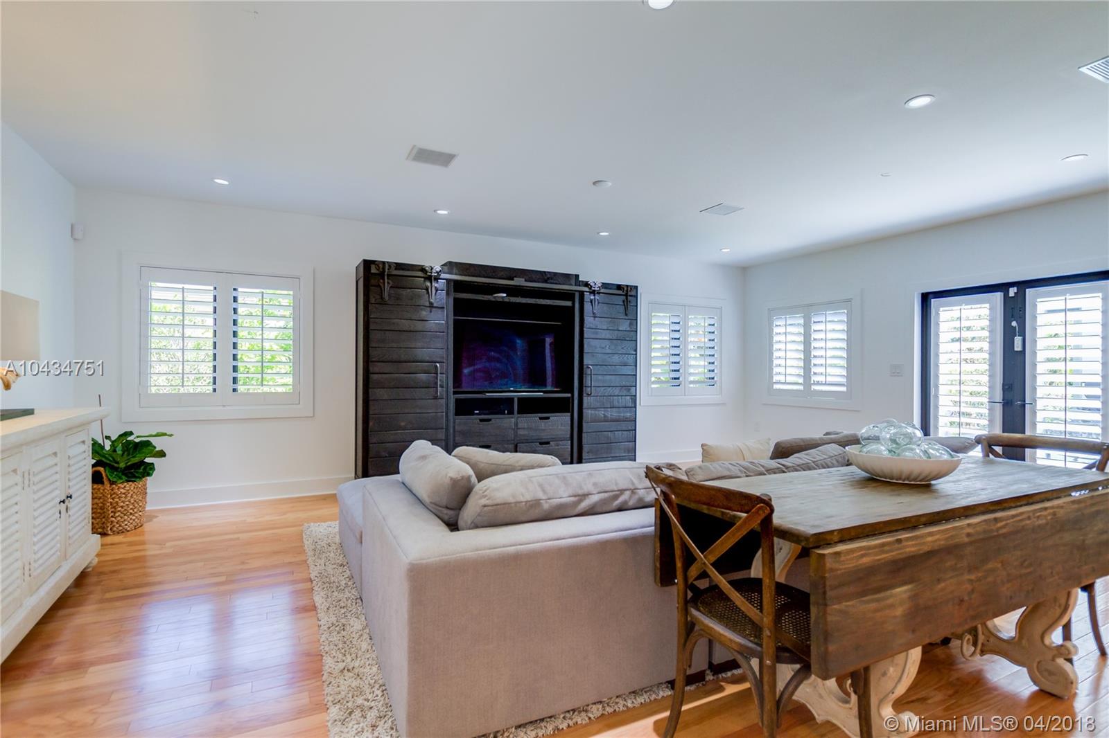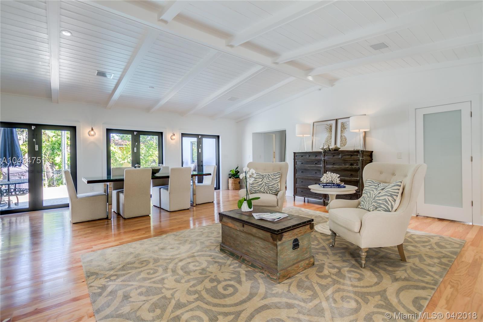 Fall in love! SELLER HAS BEEN TRANSFERED and this is your opportunity to own a new home Located on a quiet Gables street within minutes of downtown and Merrick Park. Spacious 4/ 3 single story urban oasis is the perfect jewel box home. Light, bright, open floorplan, Gleaming hardwood floors, beamed ceilings, wood burning fireplace, large living/dining room open to fabulous cooks kitchen and family room. Custom white wood cabinetry, center island, quartz countertops, Fischer Paykel appliances including gas cooktop, double ovens, double drawer dishwasher and laundry center. Custom plantation shutters give an island vibe to the home. Impact glass, pool, one car garage and private parking pad to accommodate 3 cars. Beautifully landscaped, shows like a model, This one is a "10"!