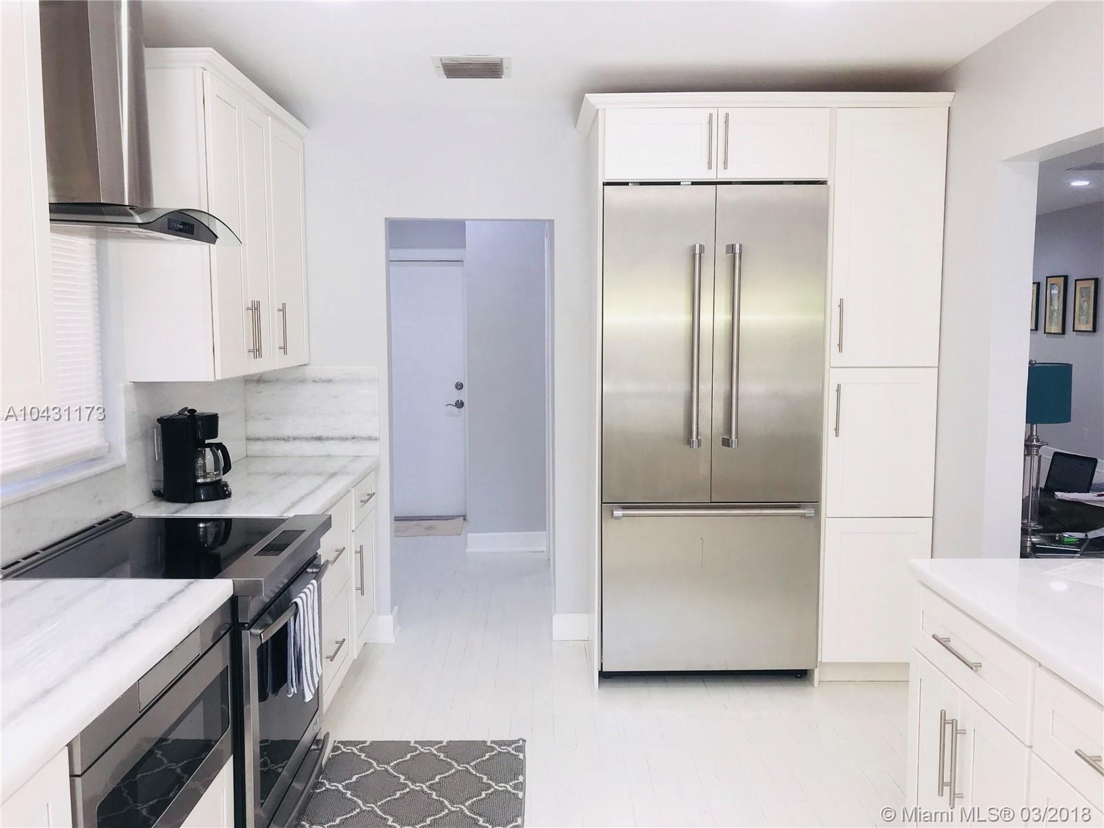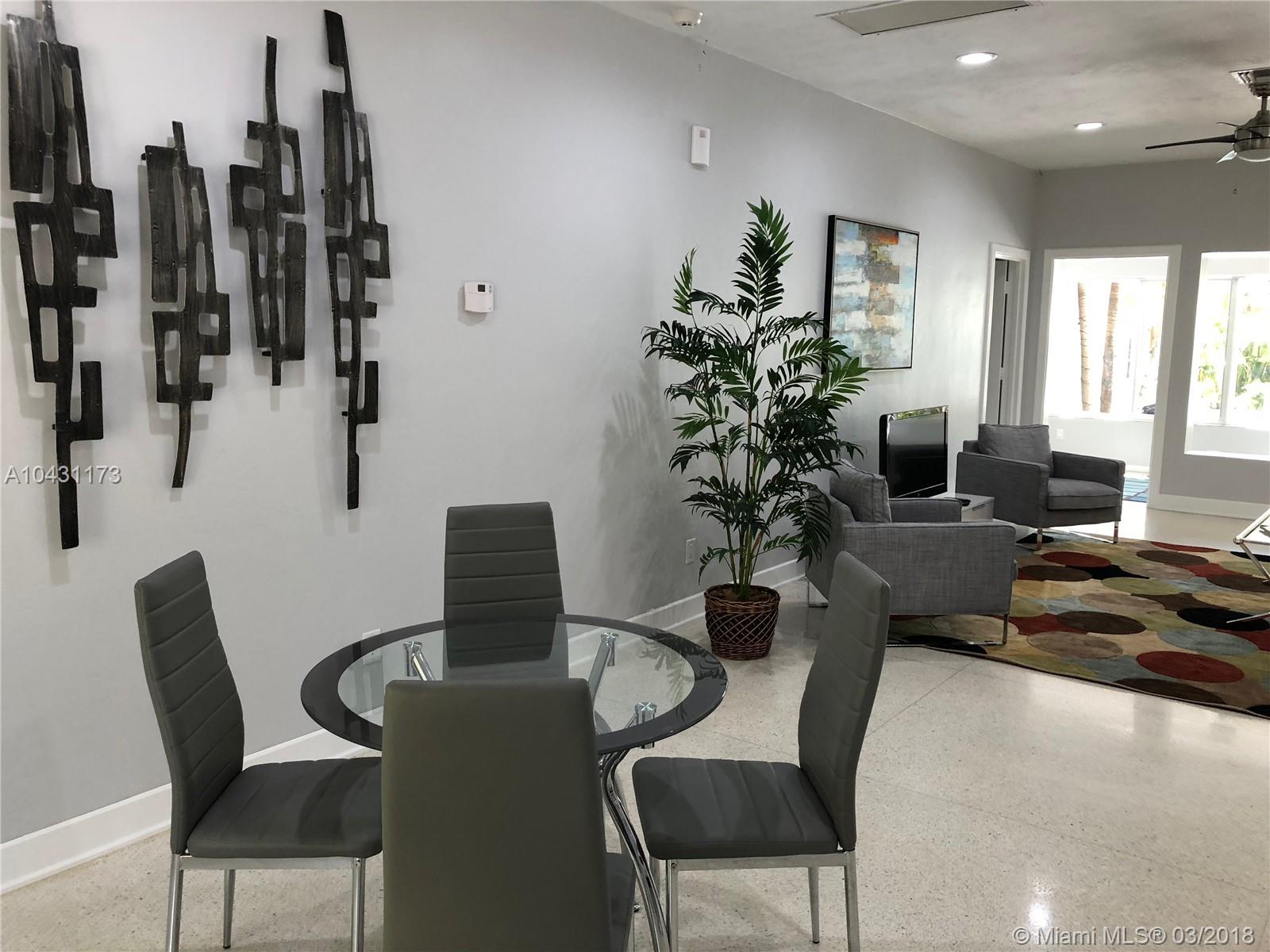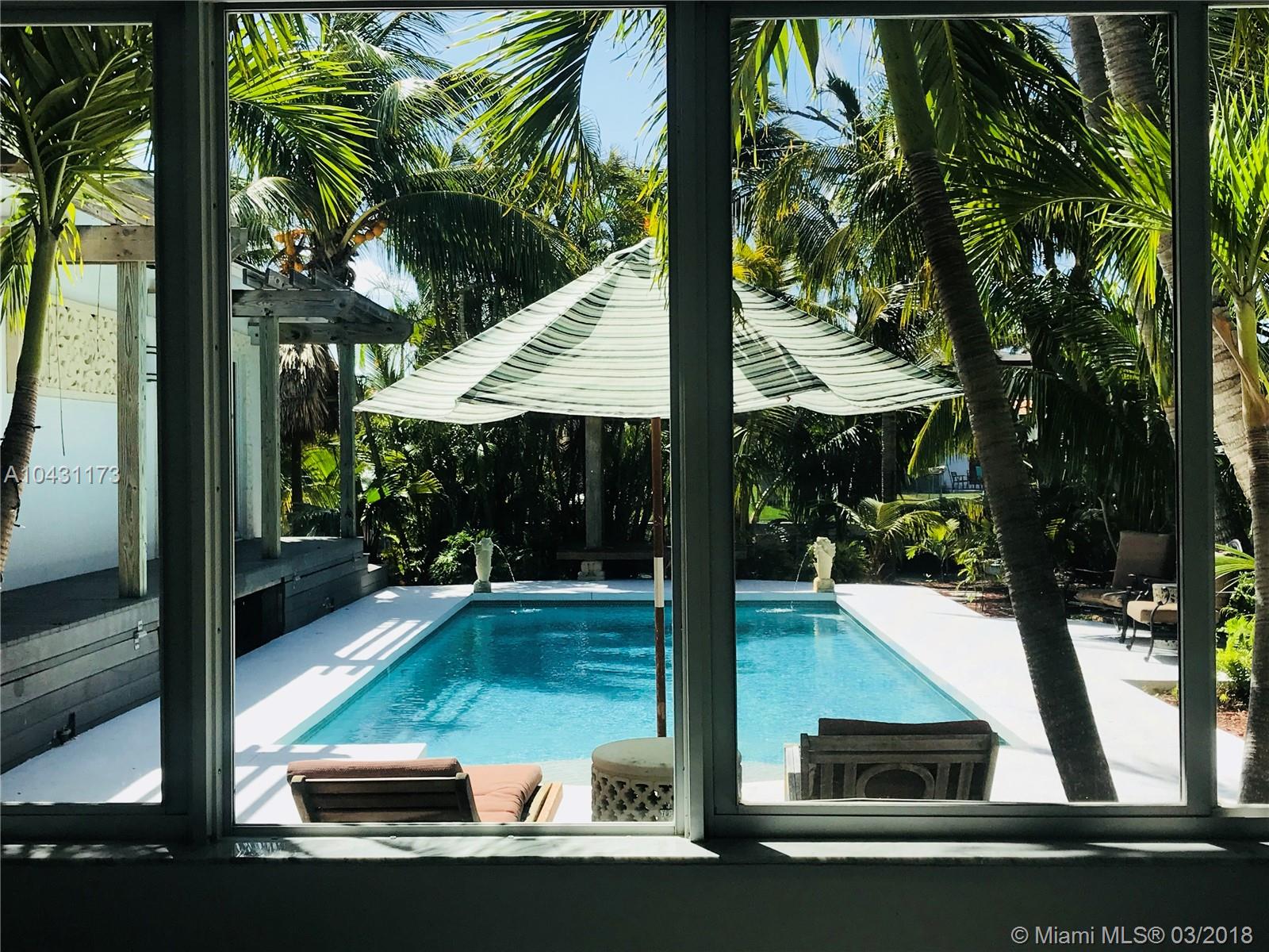 Beautiful recently updated 3 bedroom 3 bath home with Gourmet kitchen with professional appliances (Thermador,Jenn Air, Bosch) Gorgeous white marble counter tops with additional outdoor living area that provides plasma TV Lounge area,Tiki Bar, BBQ Grill, mini fridge and Alfresco dining , all overlooking the heated pool & tropical Back yard perfect for entertaining, FANTASTIC LOCATION 5 minutes to the beach 10 minutes to South Beach, Bal Harbour mall and restaurants, fully furnished just bring your personal belongs, the main house is very spacious 3 bedroom 2 bath walk in closets dining and living and Guest house is one bedroom with private bath & kitchen, marble floors and living area with gorgeous views to the pool and back yard, this house has been renovated & well maintain.