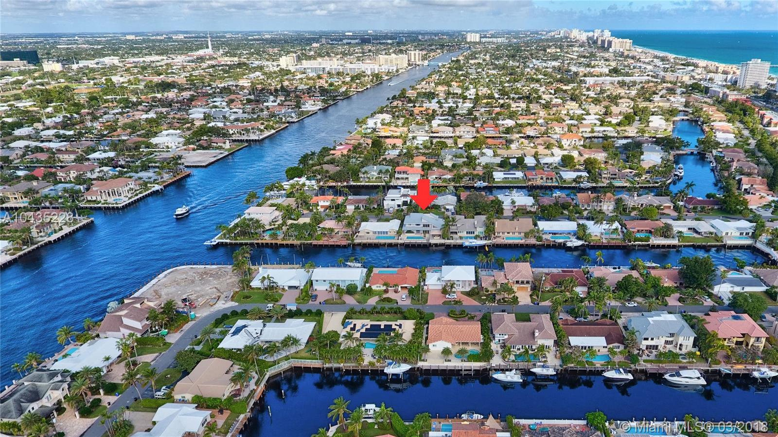 Exquisite 4bdrm/3.5bath + Loft Waterfront Pool home.Soaring ceilings w/ skylights and lots of natural light. Marble & Wood floors throughout.Luxurious designer finishes in the beautiful details of the custom doors, tray ceilings and crown mouldings.Gourmet kitchen w/SS Miele appliances, wine cooler, built in Espresso Machine and Subzero refrigerator. Master Bathroom Suite is marble galore with his and hers walk-in closets and Jacuzzi tub. Two (2) one-year-old 5 Ton A/C Units.Backyard entertaining oasis with a summer kitchen featuring a BBQ grill, beautiful pool with covered patio and much more. Majestic water views from the 2nd floor balcony, Dock and pool area. Voluntary HOA.Walking distance from Fort Lauderdale Beach! No Details spared–Must See!!!