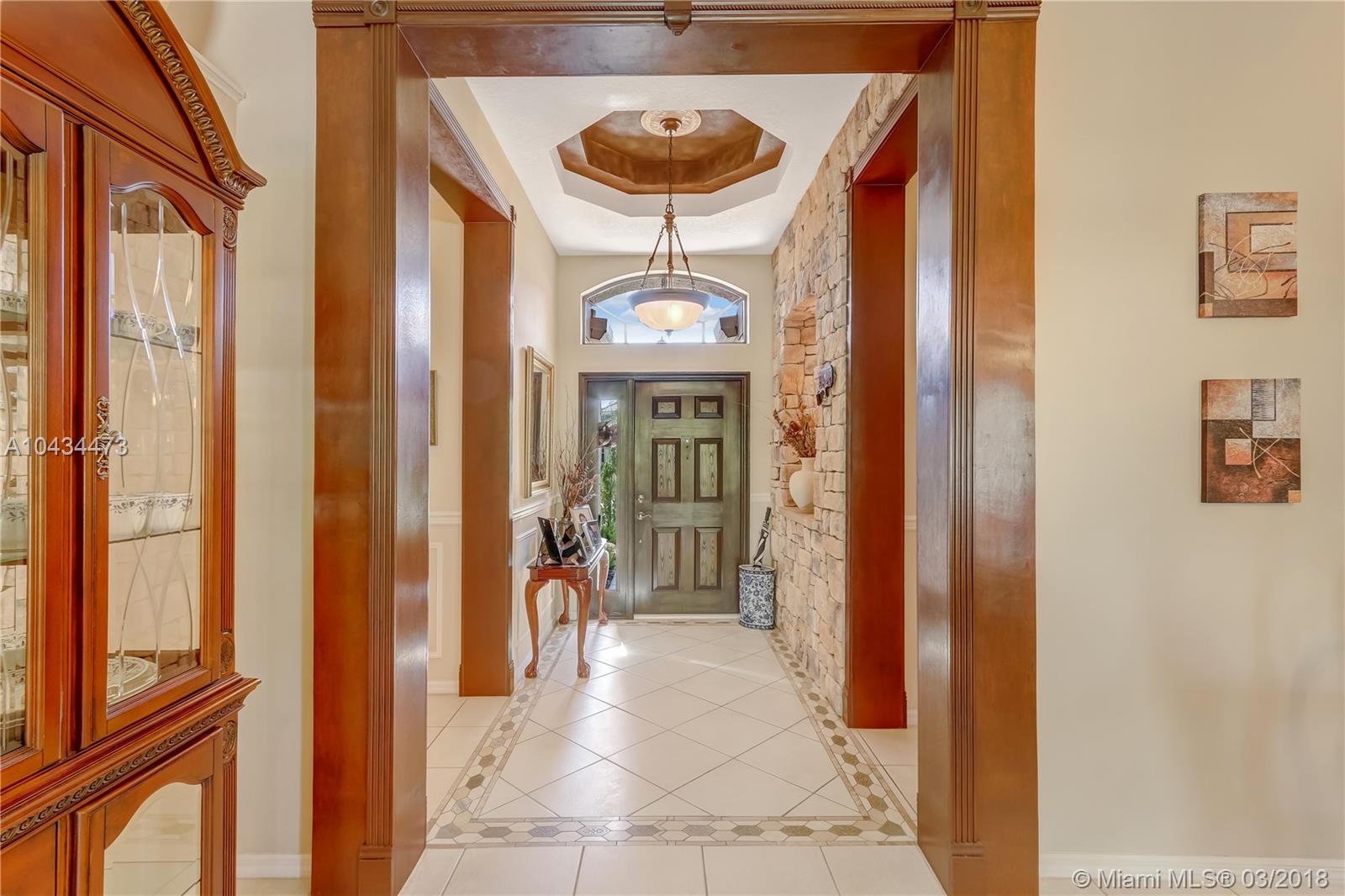Lovely pool house in a beautiful and prestigious guard-gated community. 4 beds w/3 full baths with crown moldings, ceramic and laminated floors throughout; split plan w/big master suite, custom upgraded kitchen, baths, and more. Profesional landscaping, spacious laundry/utility room next to oversized 2 car garage. kitchen/breakfast area open to spacious family room, all looking out over your own private, sparkling pool oasis with waterfall. Backyard/patio next to the lake perfect for parties and BBQs! Updated & elegant. Resort-like community amenities and great schools close to the property. You have to see it!!! Come, make this model house your home!