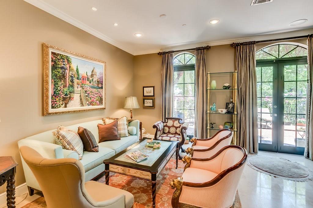 Absolute Luxury! This 3/3.5 corner townhouse features private pool with lavish garden, two balconies & two giant decks all Flagstone. Spacious, all wood and marble interiors. Designer kitchen with gas stove & beautiful black Galaxy Granite counters. Private elevator, metal railings, mammoth media room, formal living & dining rooms, sitting area in master, french doors galore, oversized 2 car garage! Asking price includes Fortuny chandeliers, custom drapes & ceiling fans. New A/C units & Bosch dishwasher.