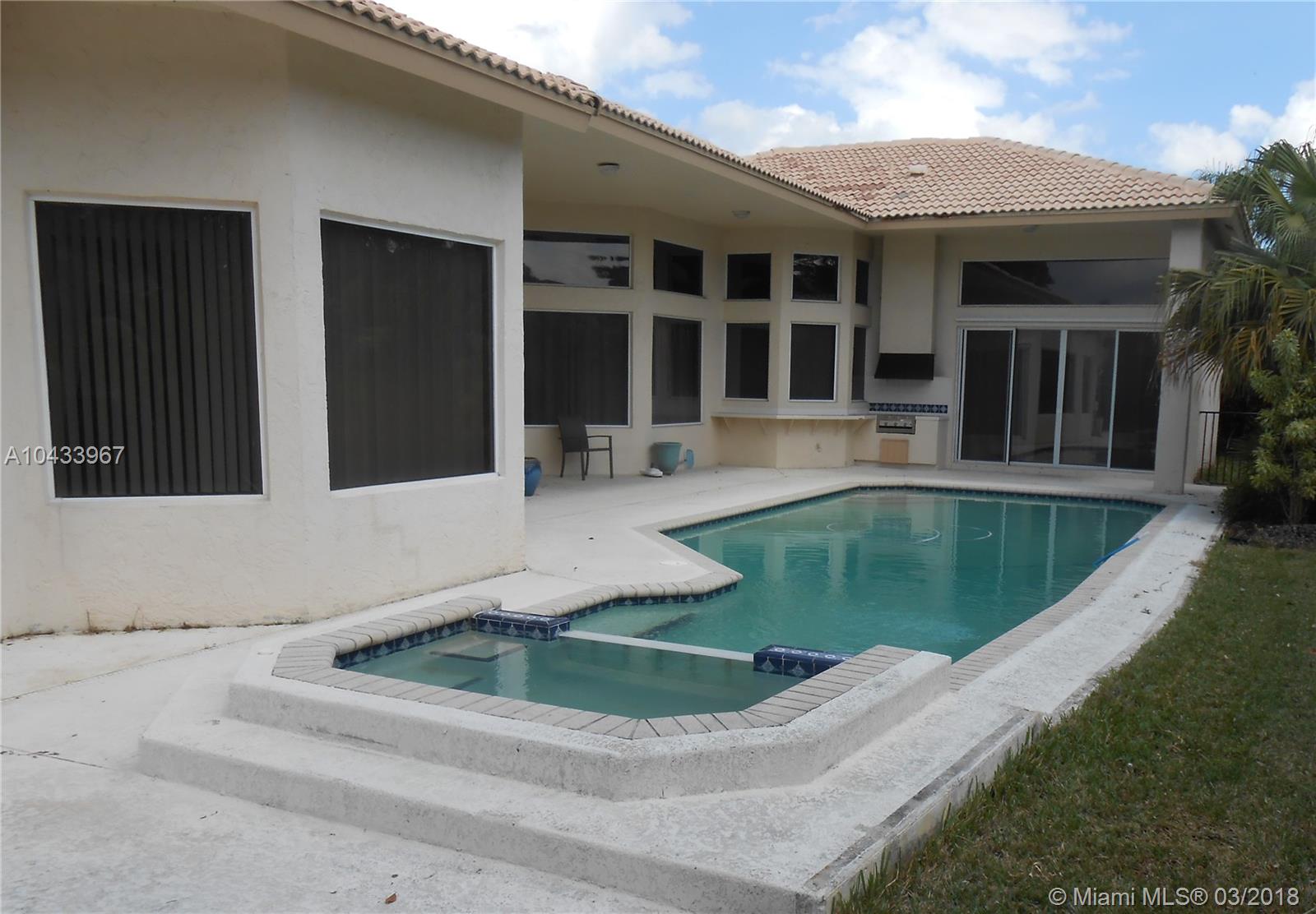Big home with a open floor plan and high ceilings in a cul de sac. Clean canvas for updating. Large master bedroom and bathroom with big tub with jets and shower with multiple shower heads. Updated stainless steal appliances in kitchen. Three good sized kids' rooms have separate wing. One bedroom has a loft that sleeps two. Office/Den and wet bar. Spacious three car garage. Large pool and spa in back. Great Schools. Walking distance to elementary, middle, and high school. Close to Sawgrass Expressway. New WH, Newer AC.
