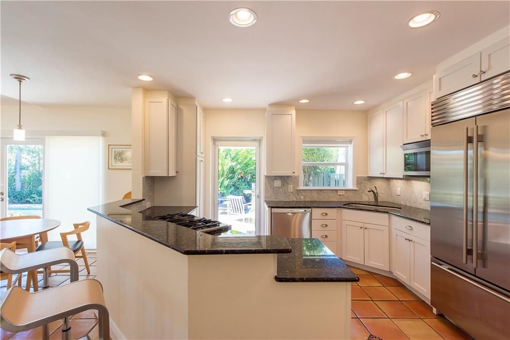 Renovated Victoria Park 3BR/2BA pool home offers the ultimate in privacy and resort-style living with wrap around terraces and a sparkling pool. Bright, sunlit interiors boast vaulted ceilings, an open living-dining-kitchen plan, rich clay tile, a Chef's kitchen w/professional stainless appliances and Breakfast bar, two Euro-Baths and a private master suite with sitting area. Features include; fully fenced lot, gated motor court, gas cooking, impact coverage, a tile roof all in a desirable location.