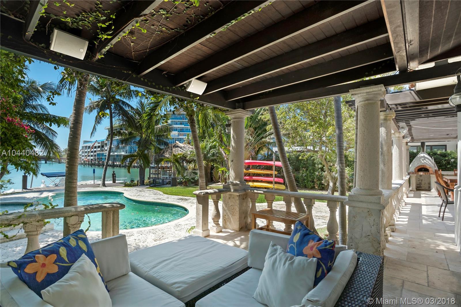 Enjoy SE breezes and wide open water views of Surprise Lake from this gated 3,100+sf, 4 bed, 3.5 bath, waterfront home on coveted Lakeview Drive. The beautiful 14,000+ sf lot with 70ft of water frontage is just minutes from the bay. A romantic outdoor loggia, tiki hut, waterfall pool with spa, and a delightful brick pizza oven make this the perfect home for entertaining. Additional features include a gourmet kitchen with 6 burner Viking gas range, 2 dishwashers, warming ovens and wine cooler, impact windows and doors, alarm system with cameras and Control4 system to manage lights, TV's, audio and A/C's.