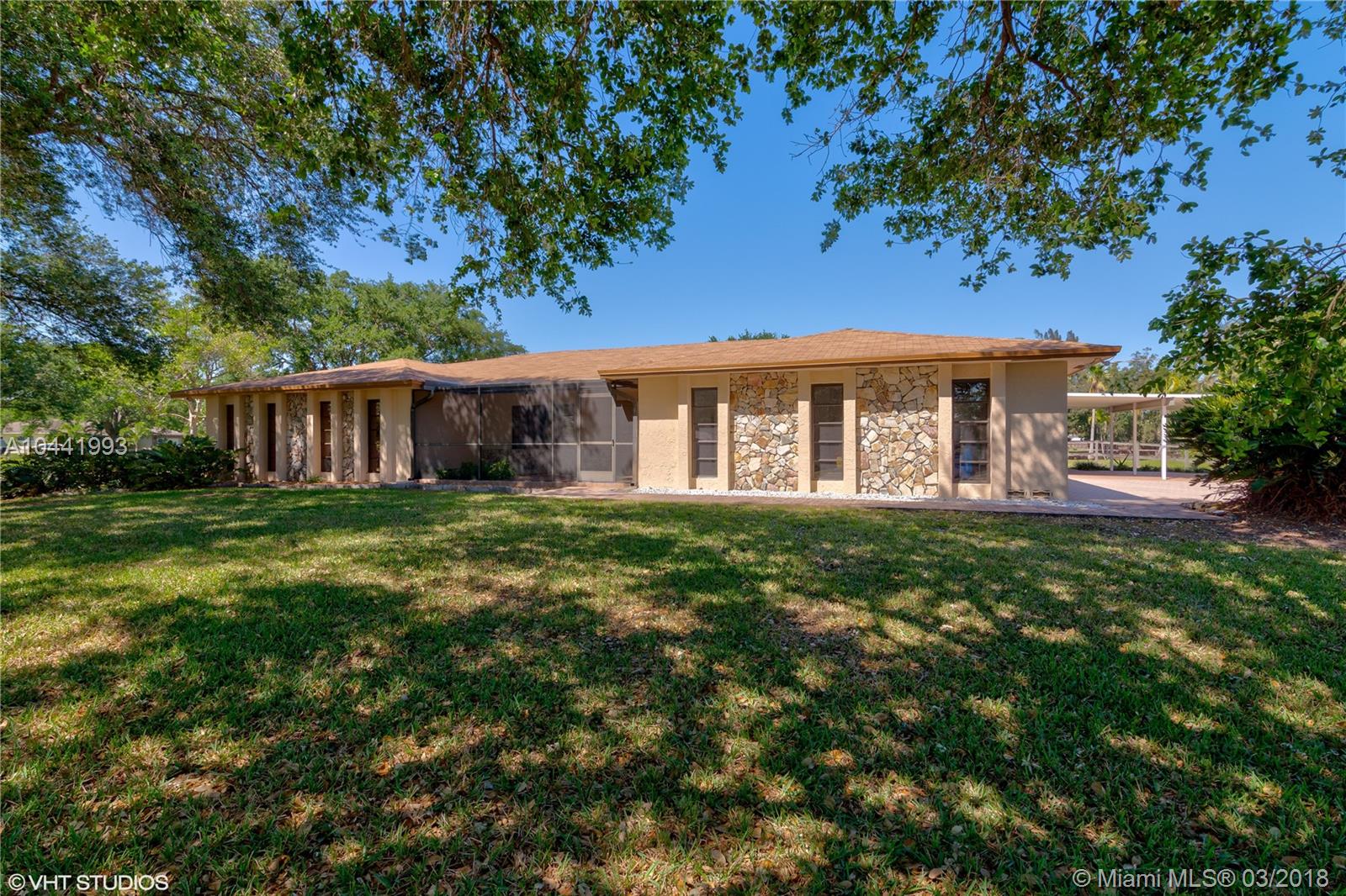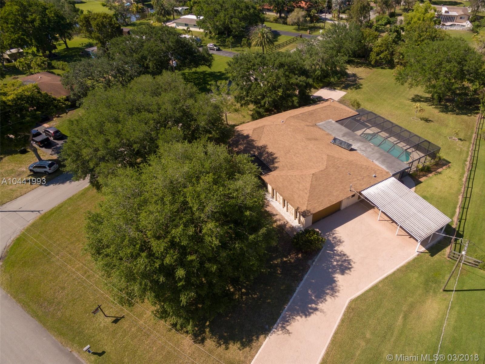 HONEY STOP THE CAR AND COME SEE THIS BEAUTIFUL 1 1/4 ACRE CORNER LOT, 4 BEDROOM, 2 1/2 BATH HOME, WITH A LARGE SCREENED IN PATIO AND 8 FT. DEEP POOL IN SOUTHWEST RANCHES. THIS HOME FEATURES OVER 4000 SQ. FT. UNDER AIR, A LARGE FLORIDA ROOM, OVERSIZED 2 CAR GARAGE, A/C LAUNDRY ROOM WITH SINK, 3 CAR PORTS AND A PAD TO PARK YOUR BOAT OR RV. THIS HOME HAS PLENTY OF STORAGE WITH APPROX 20 CLOSETS INCLUDING 6 WALK-IN CLOSETS, A LARGE PANTRY AND A SAFE. THE YARD CONSIST OF 7 MANGO TREES, AN AVOCADO TREE, 2 BUTTERFLY GARDENS AND SEVERAL LARGE TREES TO BUILD YOUR OWN TREE HOUSE WITH A WATER VIEW. THIS HOME IS GREAT FOR ENTERTAINING AND TO RAISE A FAMILY. MOVE IN CONDITIONS AND READY TO ADD YOUR OWN TOUCH. Roof 2006. EASY TO SHOW... THIS HOME WON'T LAST LONG!!! CALL FOR AN APPOINTMENT