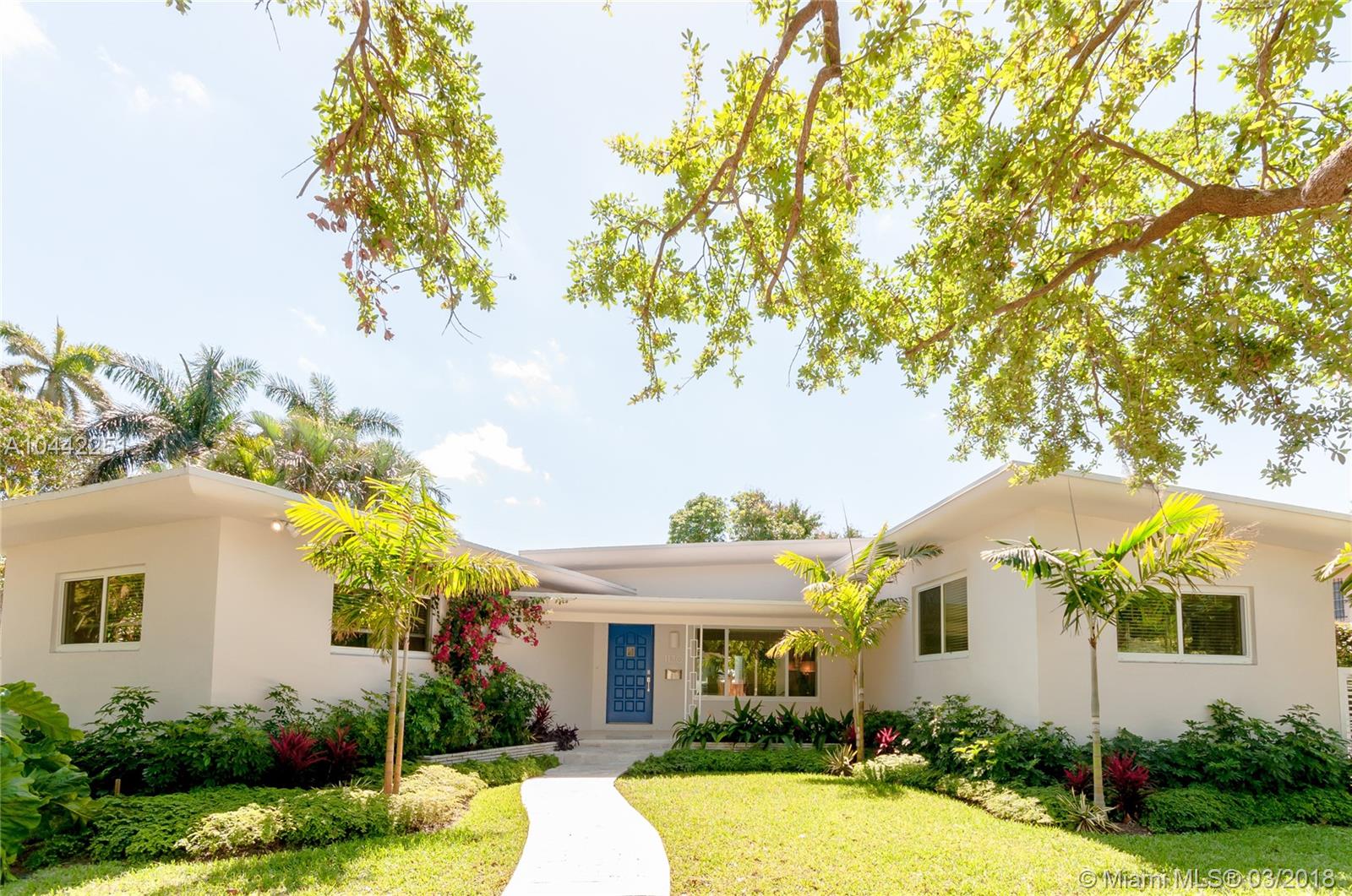 Stunning EAST MIAMI SHORES entertainment / family home. Fully renovated 2,378 SF, mid-century, 4/3 w/ pool is surrounded by lush designed landscape. Spacious, bright living & dining spaces overlook the terrace, pool and private gardens. Large gas-gourmet kitchen w/ quartz tops built-in cabinets, S/S appliances includes breakfast area. Split plan, boasts large, bright bedrooms, hardwood floors, en-suite baths, and private master w/ new luxury bathroom. Cul-de-sac, near great schools, art, restaurants, shops and the beach!
