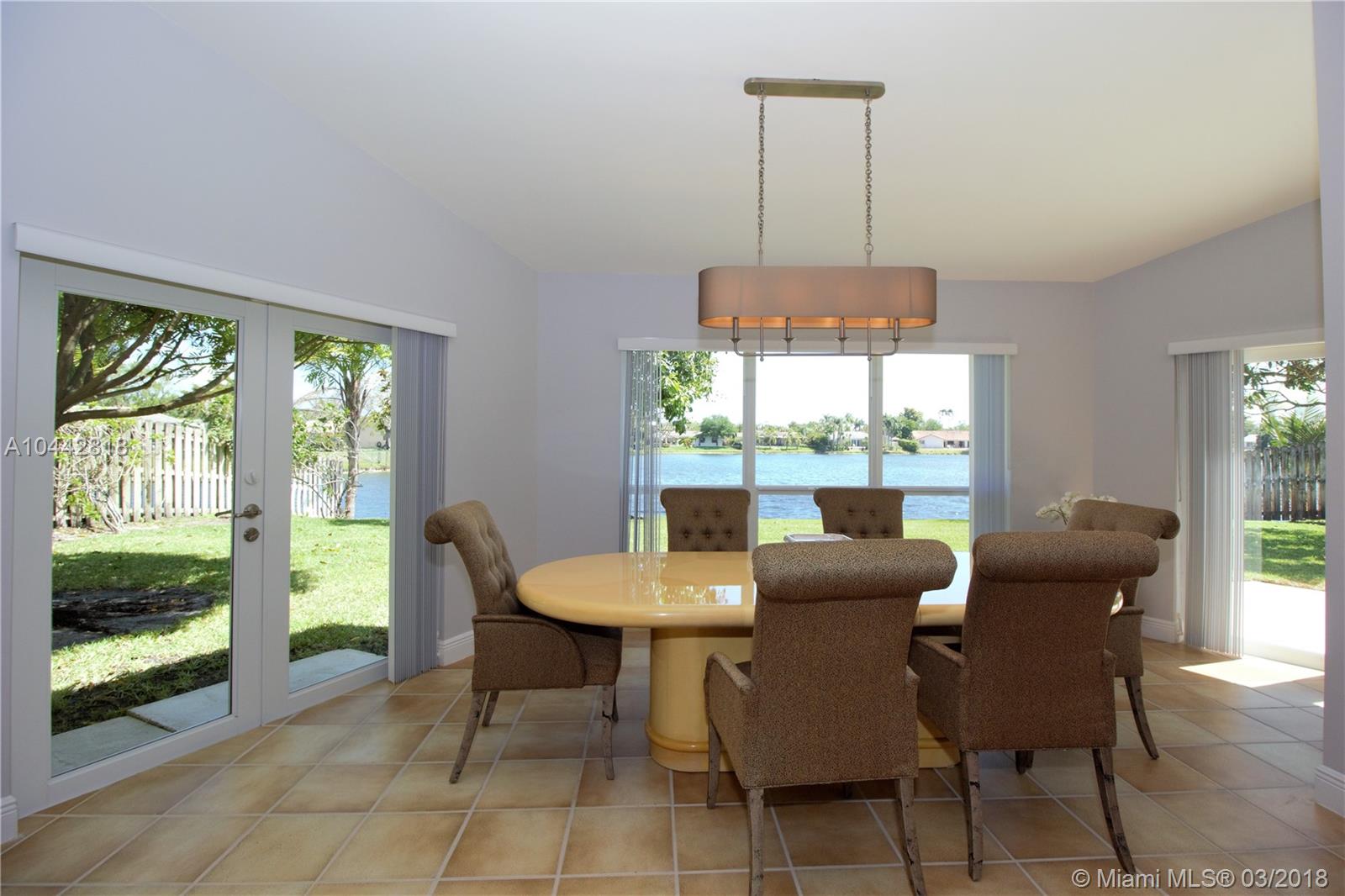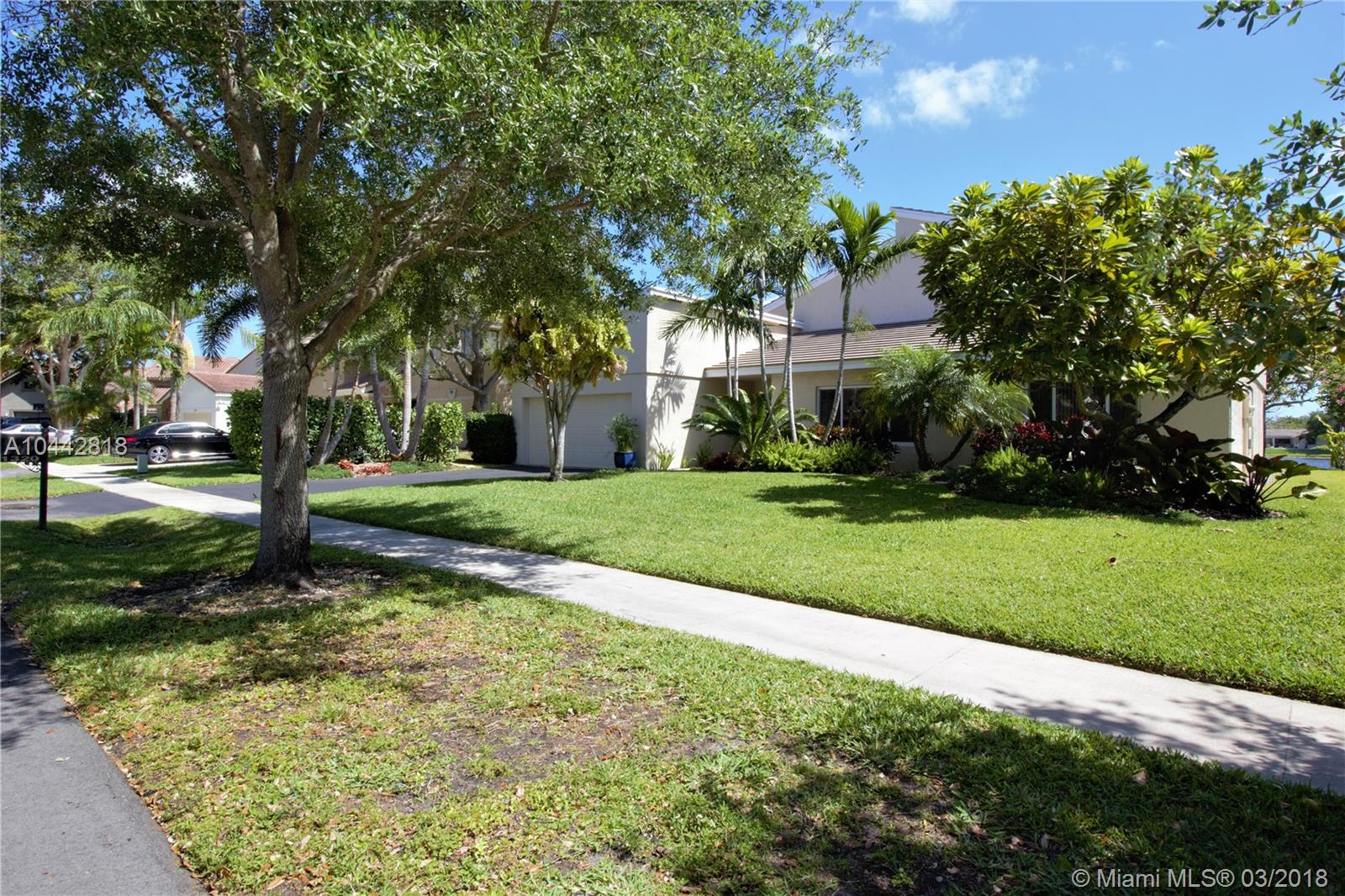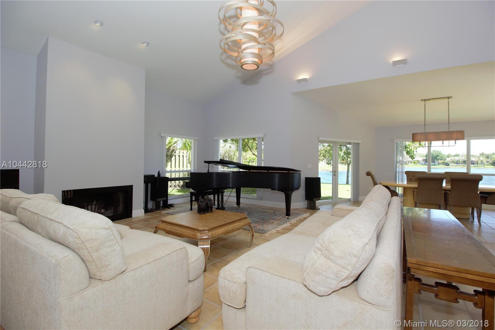 Welcome Home to Jacaranda Lakes. Largest Model available in this community. This beautiful 4 bed 3 bath home is perfect for those who love to entertain. Spacious living areas and volume ceilings including family room overlooking the lake. Enjoy the ambiance by the fireplace and large family gatherings. Get away to your own private retreat in the gorgeous Master Bedroom suite with remodeled Spa bathroom featuring a tub, bidet, oversized shower with his/her sink, and oversized walk in closet! This gem also features hurricane impact window and doors, wood kitchen with stainless steel appliances and Corian countertops, freshly painted, and much more. Hurry before this Gem has a sold sign posted!