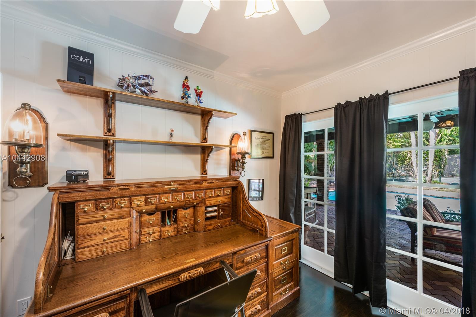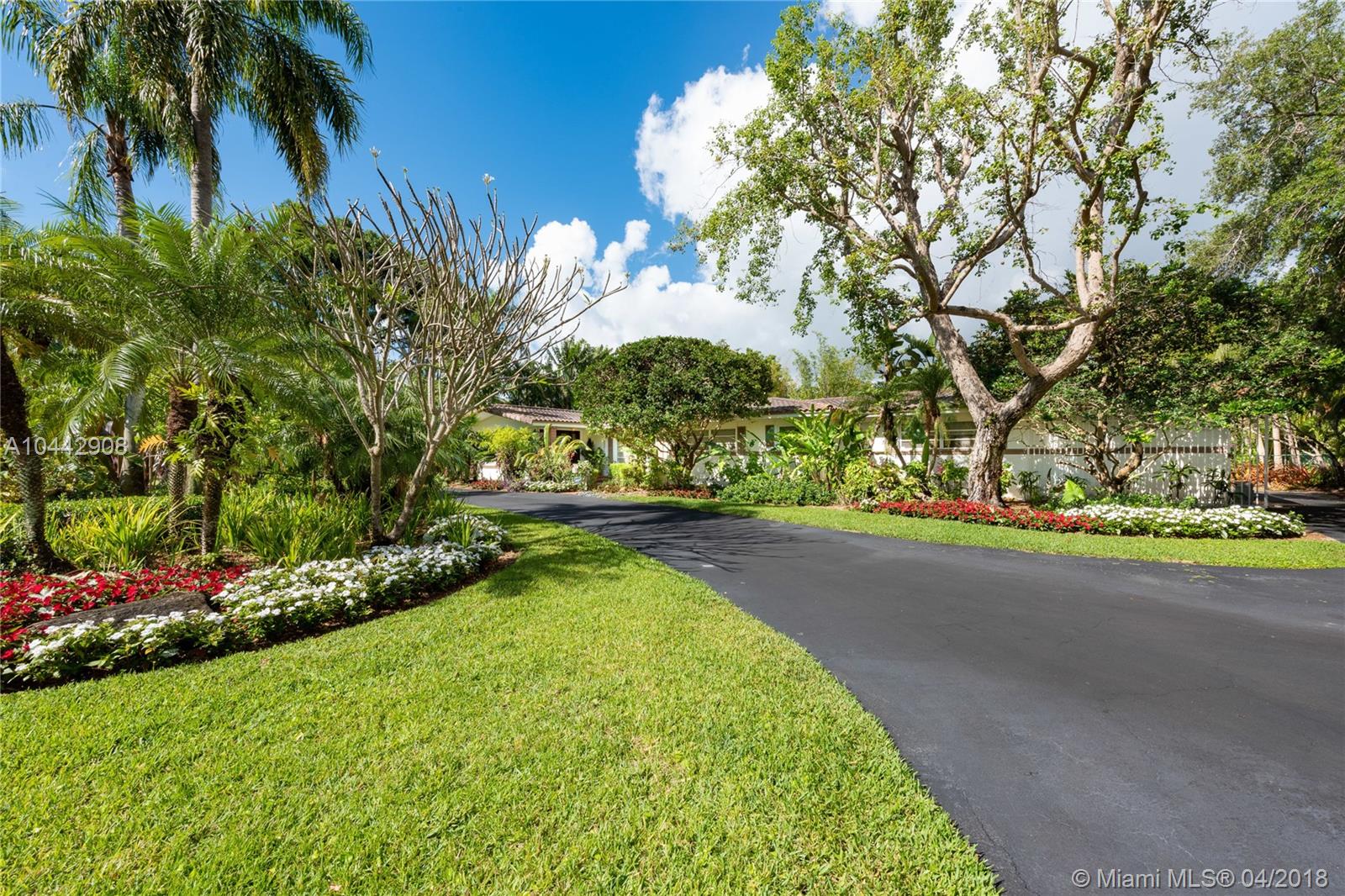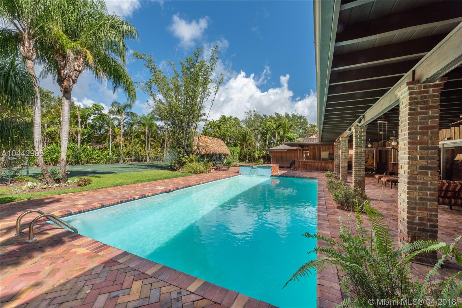 Sophisticated 5BD plus office & 4BA home situated on deep lush acre on quiet street in Pinecrest. Elegant entry way that opens up to large formal living & dining rooms. Eat-in kitchen w/wood cabinetry. Split bedroom w/master & office/nursery/exercise room on one side & 4 bedrooms on other side. Master suite features large walk-in closet & beautifully renovated luxurious bath. Wood flooring. Indoor laundry room. Wonderful, private back yard w/pool, patio & tennis court. Perfect family home!