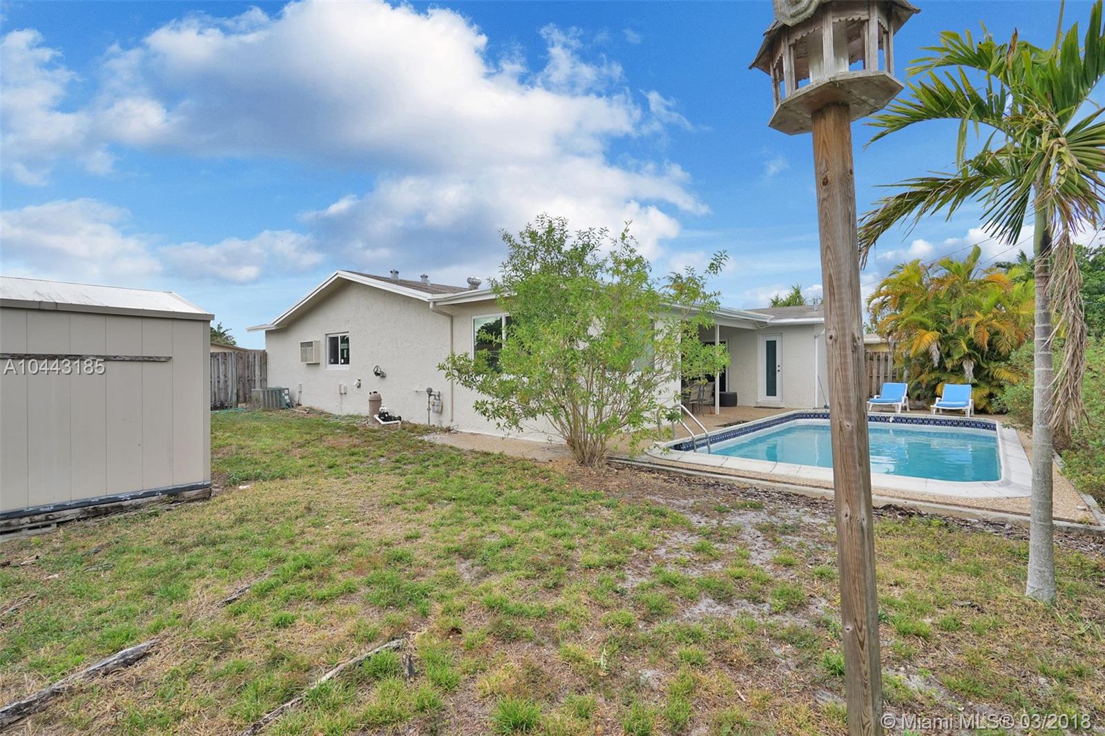 3 Bedroom, 2 Bathroom Pool Home In Sought After Sunrise Golf Village. Open and spacious floor plan. Tile floors throughout. Large kitchen with granite counters, tons of cabinets, pantry and room for kitchen table. Impact windows and doors throughout. Covered back patio, in ground pool, shed and fenced yard. Minutes to Sawgrass Mall and Expressway.
