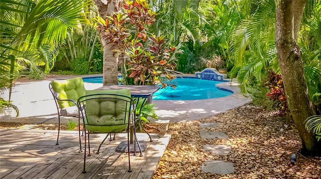 Beautiful 4 bedroom 2 bath home with a spacious bright and airy flow! From the front door, the Living Rm, Dining Rm, Kitchen & Family Rm are all open to each other and lead out thru French doors to the lushly landscaped back yard with patio, deck & freeform "Oasis' pool w/fountains. The private Master Suite also opens to the pool area, while the 3 Guest Rms & Guest bath are on the other side for separation. Newer barrel tile roof & paver driveway, almost all impact windows & doors, Great Kitchen ! "10"