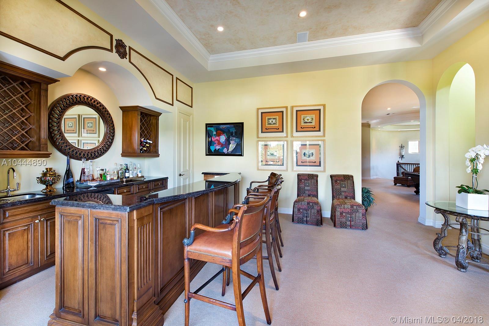 Welcome to Villa Flora, a private enclave in exclusive Williams Island! As showcased in Aventura magazine, this furnished, Tuscan-style 3 story home provides all of today's modern conveniences with a touch of Old World charm. Perfect for families and entertaining, the first floor living areas come complete with gourmet kitchen featuring state-of-the-art Thermador, Bosch and KitchenAid appliances, grand dining room, and 2 living areas overlooking free-form private pool and covered patio. Bedrooms and offices complete the 2nd floor with additional balconies and picture windows to capture the Florida sunshine. The 3rd floor entertainment area provides fully equipped theatre and gaming area w/ fully stocked bar/pub area. Addl amenities include elevator, butler's pantry, & laundry room.