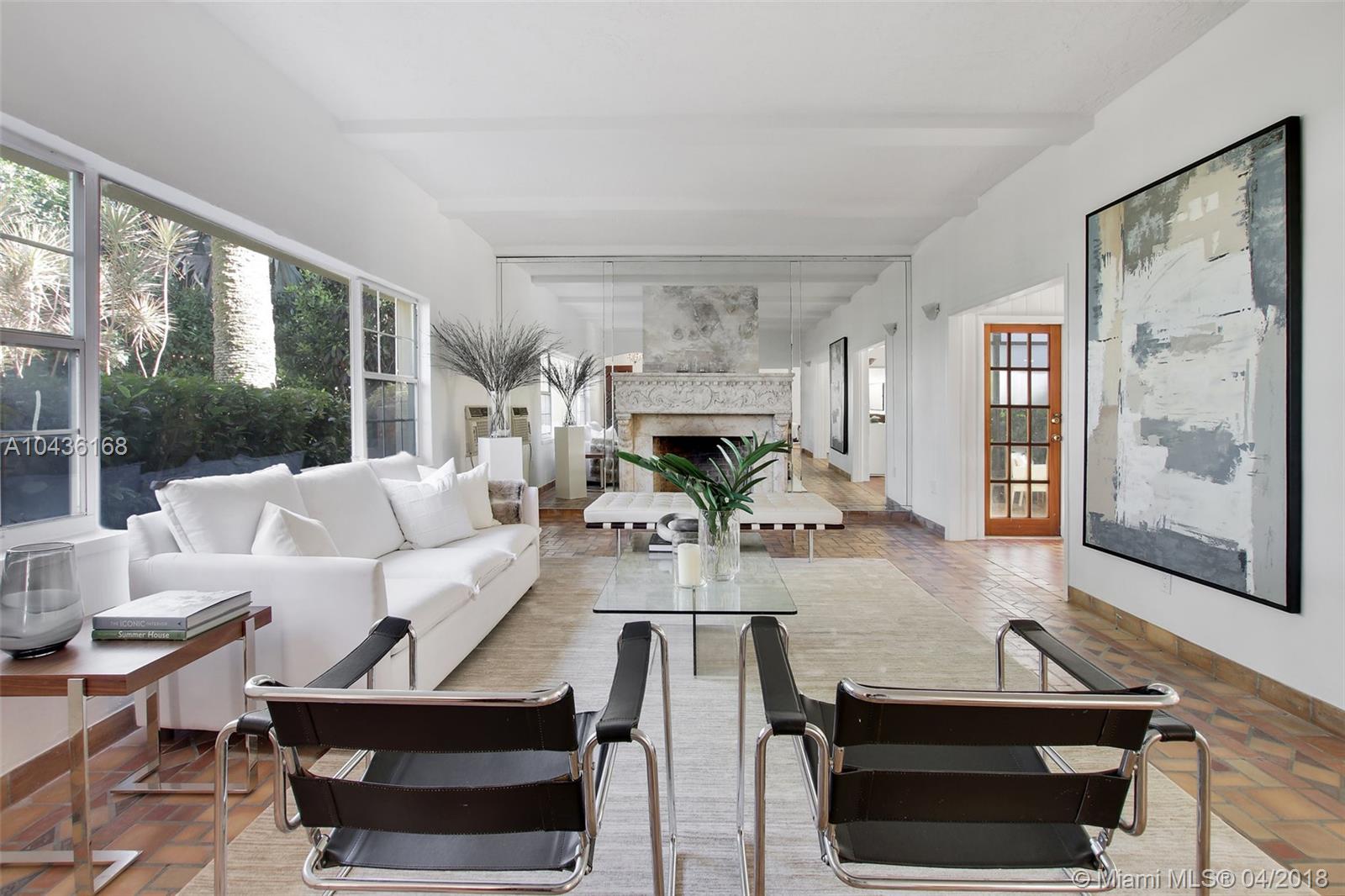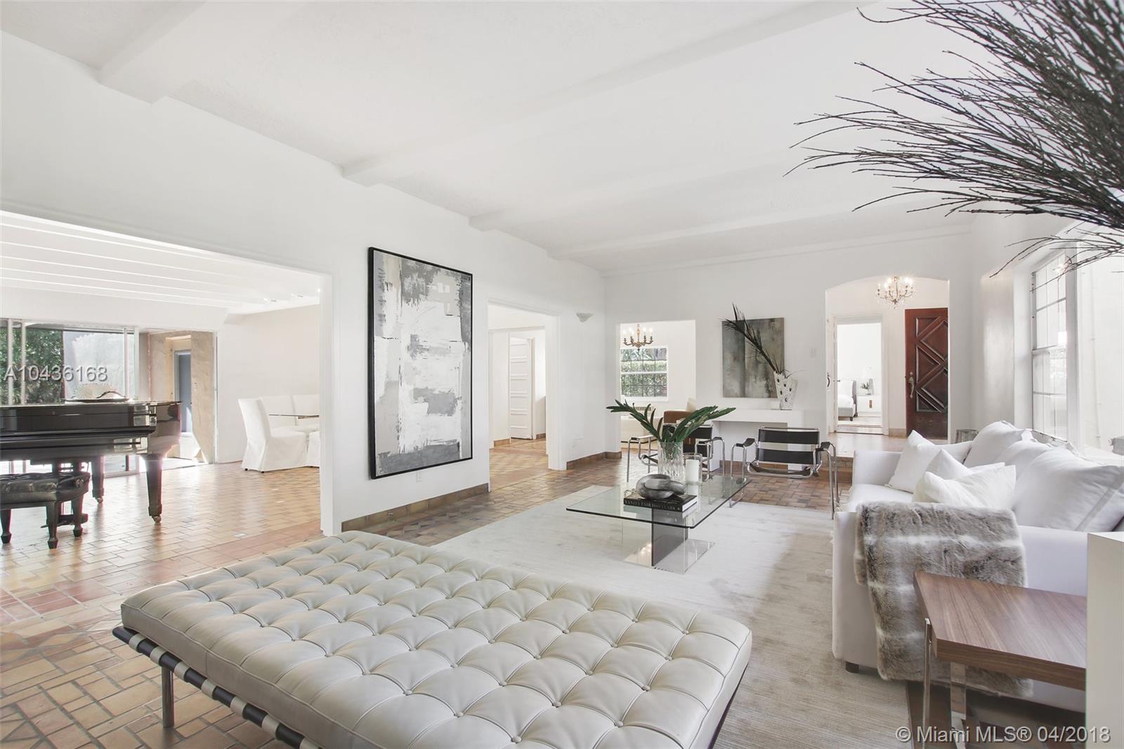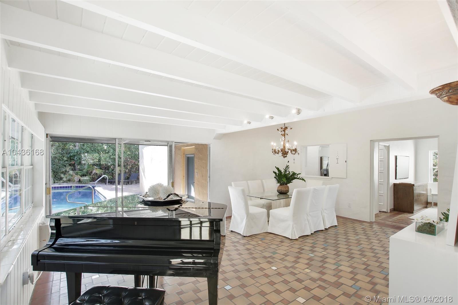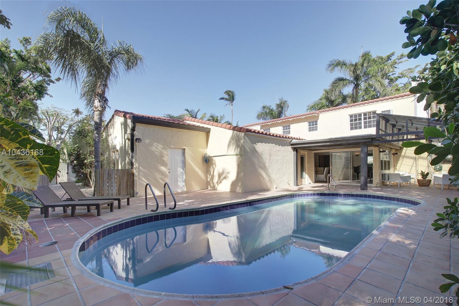 A true transitional Mediterranean Miami Beach home located on prestigious Pine Tree Drive surrounded by multi multi million dollar homes. Pine Tree Drive maintains its real neighborhood feel along with the glamour of Miami Beach. Located on a large corner lot , this elegant home features beautiful original Spanish tile floors and wood floors in the bedrooms. The living spaces are huge with high ceilings along with a formal dining room and expansive Florida room leading out to the 300 sf plus covered patio , pool and attached guest cottage. The 2 car garage is intact with covered access to the house which also connects the 2 room guest cottage. There are 3 extremely spacious bedrooms in the main house along with a spacious landing perfect for an office or reading space.